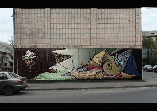 «Ескіз, поки що чорновий варіант, я хочу намалювати на стіні у центрі міста. В моїх запасах є фарби, але їх недостатньо для того, щоб колір малюнку був насиченим.