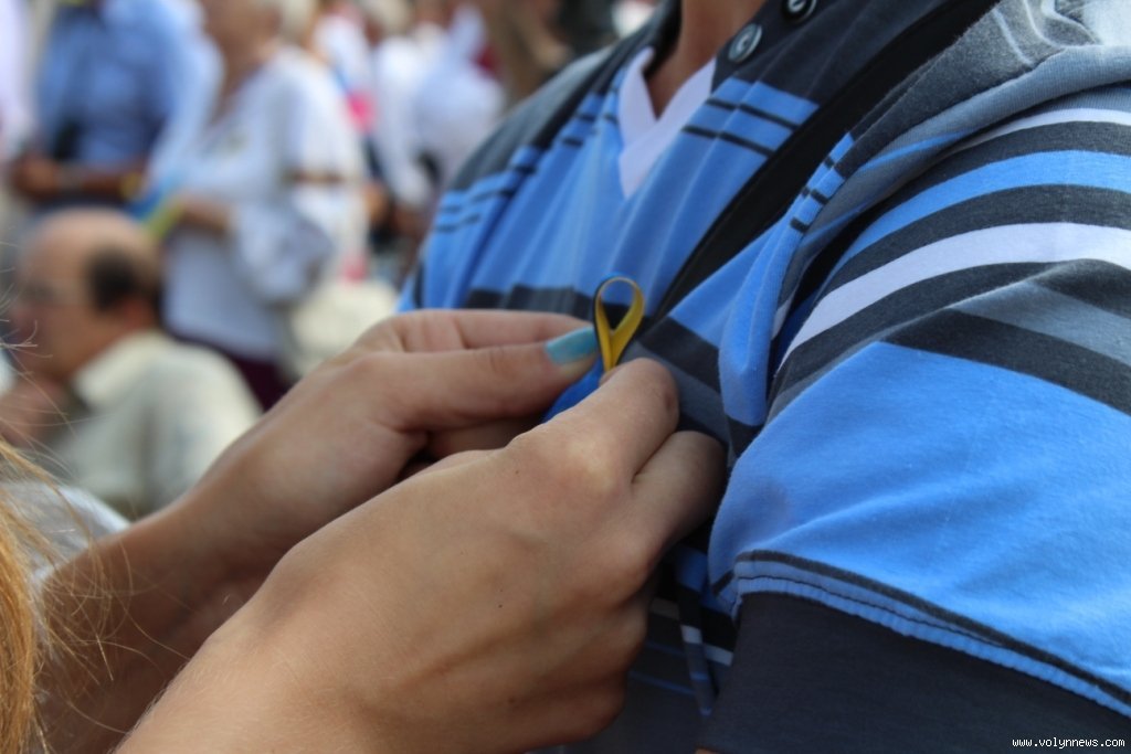 Цього разу учасники акції утворили живий логотип Луцька - ключик, одним із елементів якого є стилізоване зображення В'їзної вежі Луцького замку.