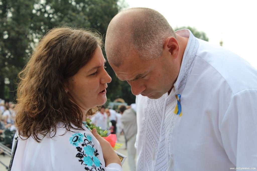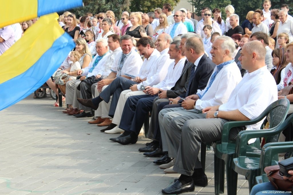 Офіційна частина свята стартувала о 10 годині – на Театральному майдані зібралися представники обласної та міської влади, чиновники, працівники комунальних підприємств і закладів, й інші охочі долучитися до уроочистої академії лучани. Під час заходу привітали мешканців Луцька зі святом – міський голова Микола Романюк, голова обласної ради Володимир Войтович, перший заступник голови ОДА Олександр Башкаленко, а також Народний депутат України Ігор Палиця. Посадовці вручили відзнаки з нагоди Дня Незалежності України працівникам підприємств, установ та організацій міста, а також депутатам міськради та підприємцям.