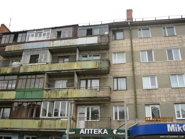 У луцькій багатоповерхівці на проспекті Перемоги ще в лютому 2010 року під тиском снігу провалився дах, однак чиновники міськради згадали про нього лише через шість місяців.