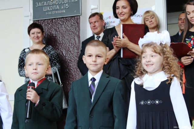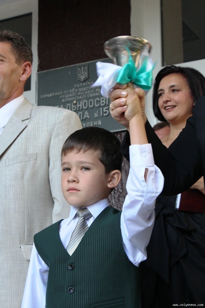 Право нести перший дзвоник за звичаєм надали двом першокласникам. Щоправда, у парі з першачками дзвонили у дзвіночок також учитель біології школи №15 Валентина Якимчук та лучанин Андрій Ліщук, які свого часу, коли також були першокласниками, сповіщали про початок нового навчального року у цій школі.
