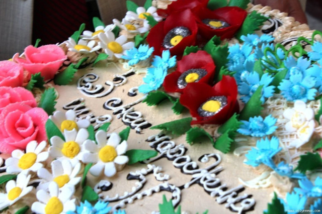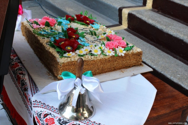 Директор школи Світлана Романюк привітала усіх зі святом і зауважила, що торт виготовлений на честь 50-ліття закладу розділять між школярами й учителями.