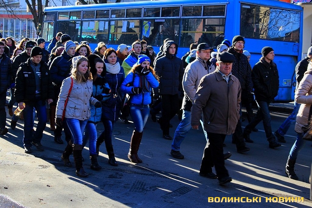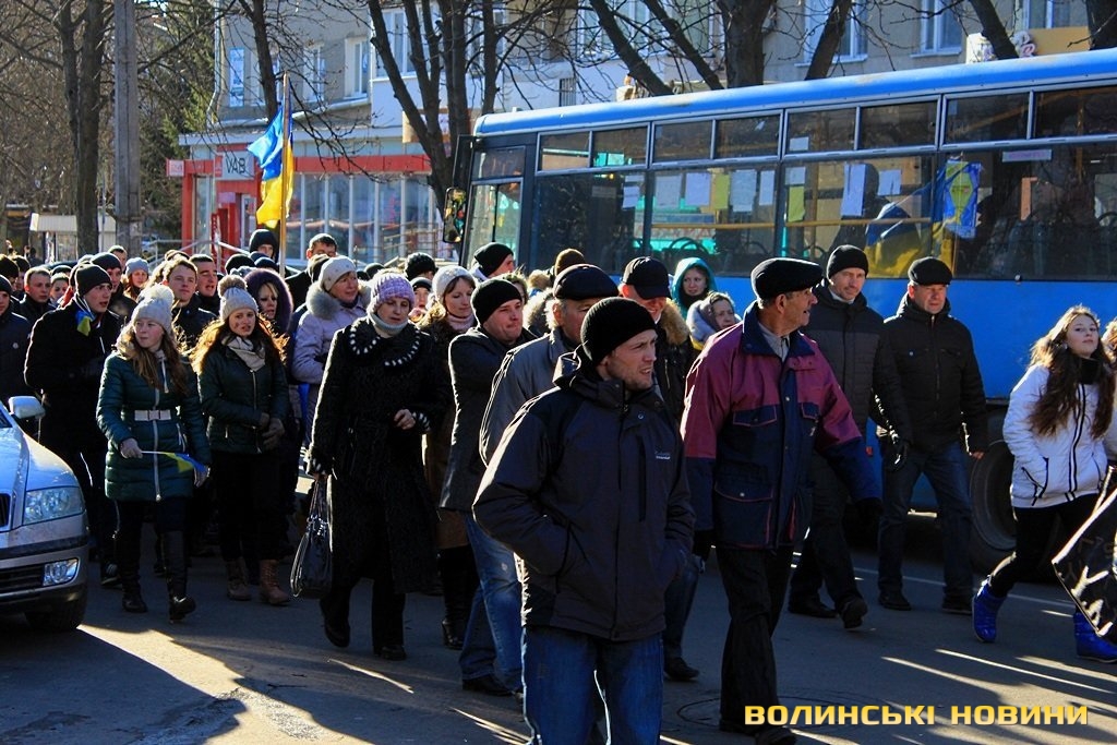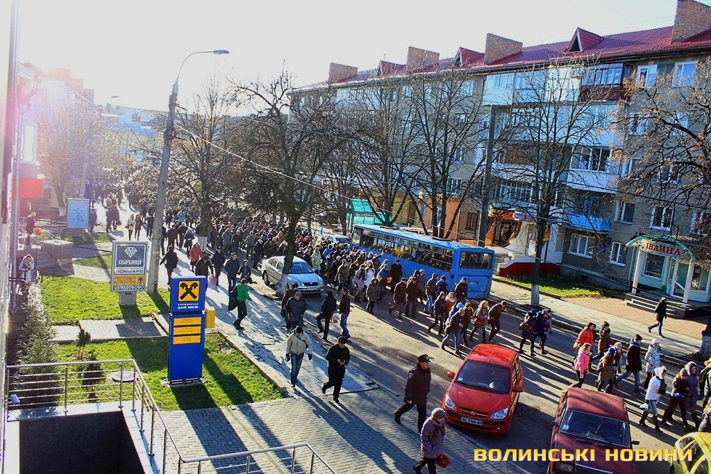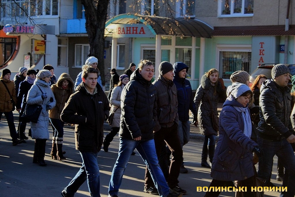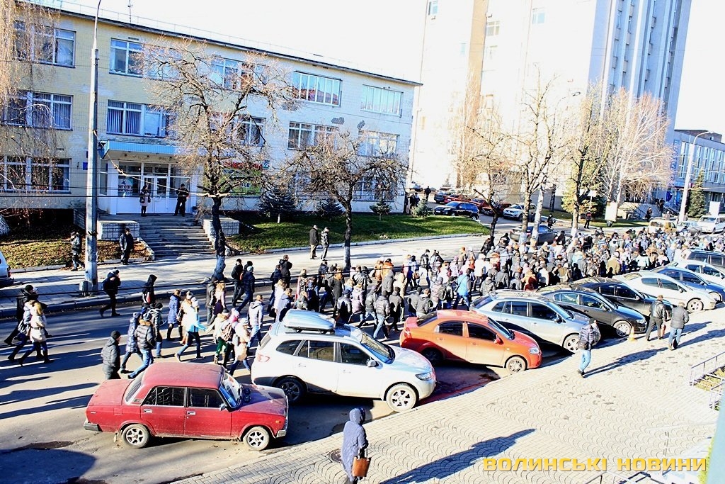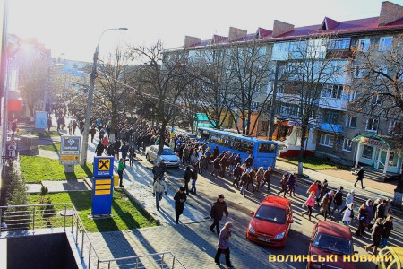 У Луцьку колона мітингувальників рушила до Управління ДАІ УМВС України у Волинській області.
