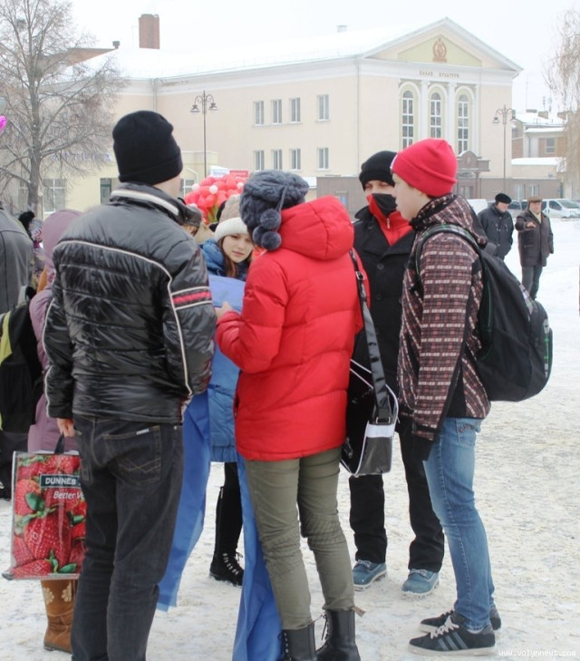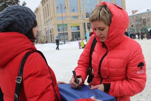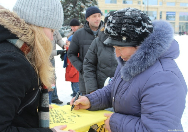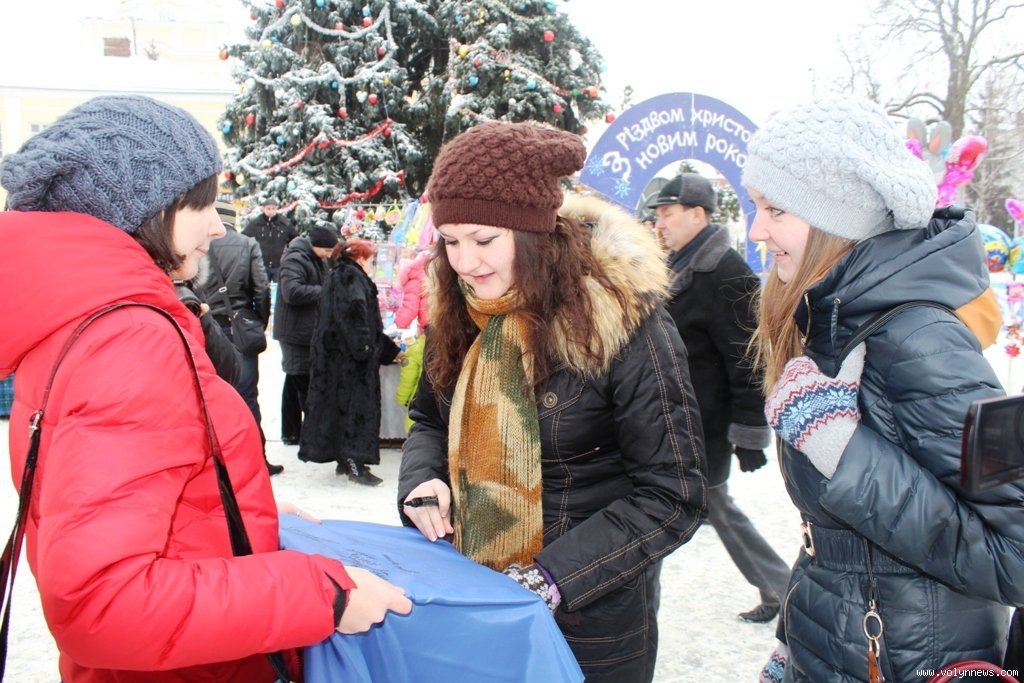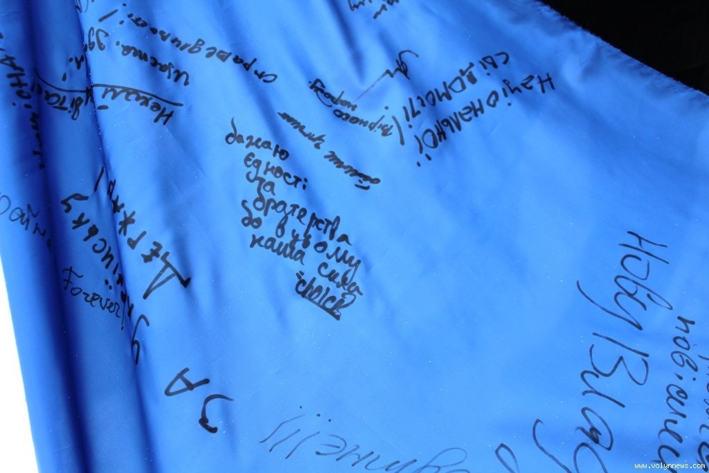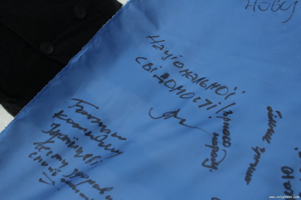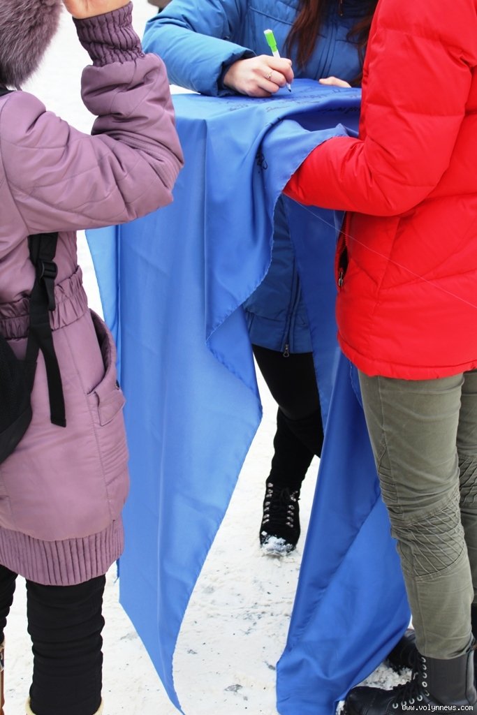 Про це вони висловивлися під час акції «Схід і Захід разом» до Дня Соборності України, що відбулась на Театральному майдані в Луцьку, 20 січня. Організатори збирали побажання лучан на синє і жовте полотна, які після закінченню акції зшили в прапор та ввечері обіцяють відправити до Києва.