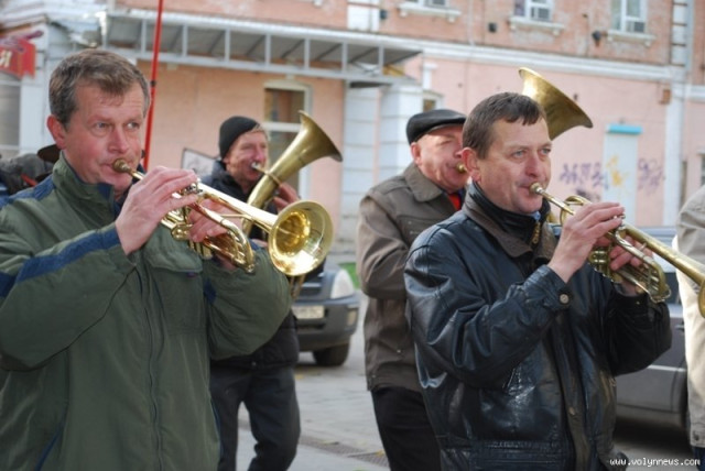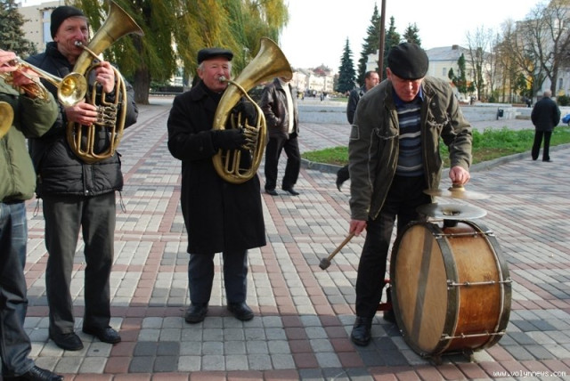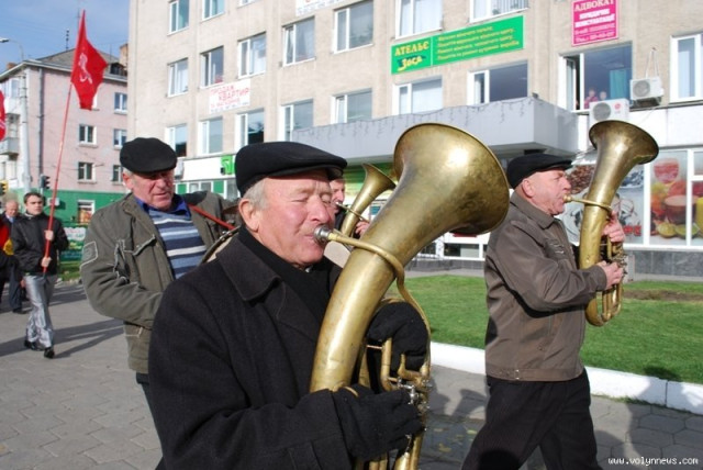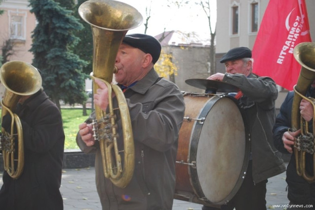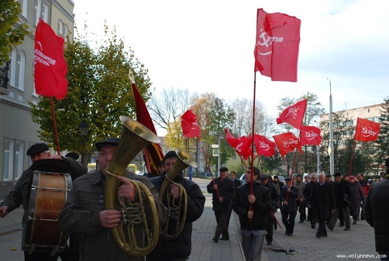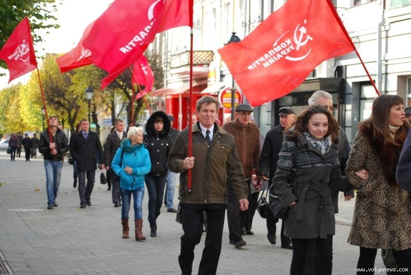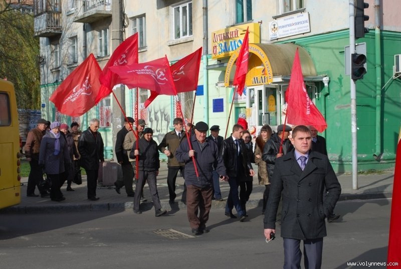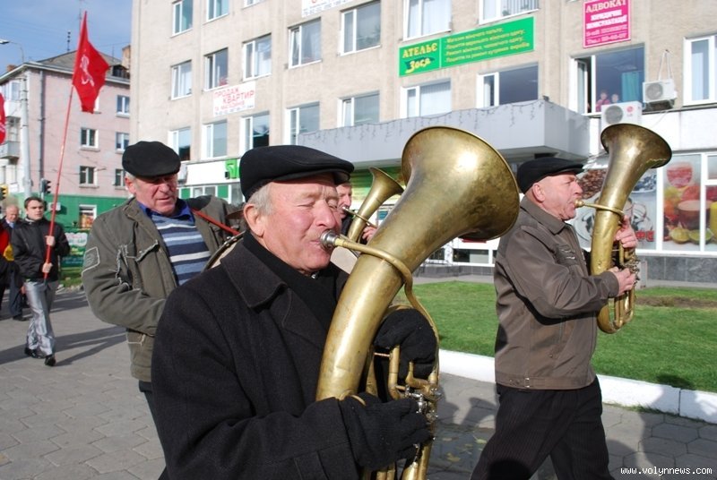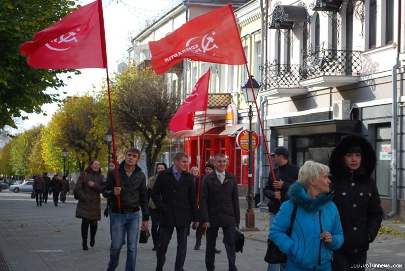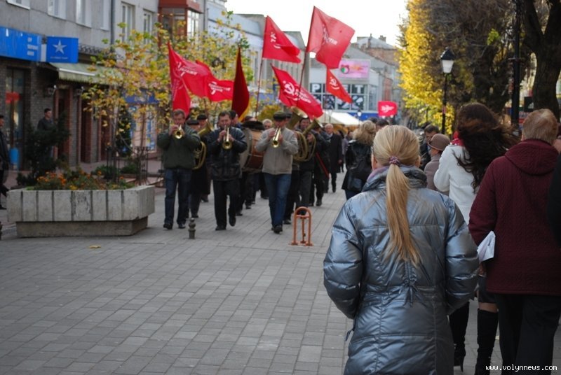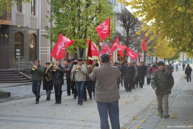 Комуністи пройшли від початку вулиці Лесі Українки, що у Луцьку, до міського Палацу культури під звуки духового оркестру.