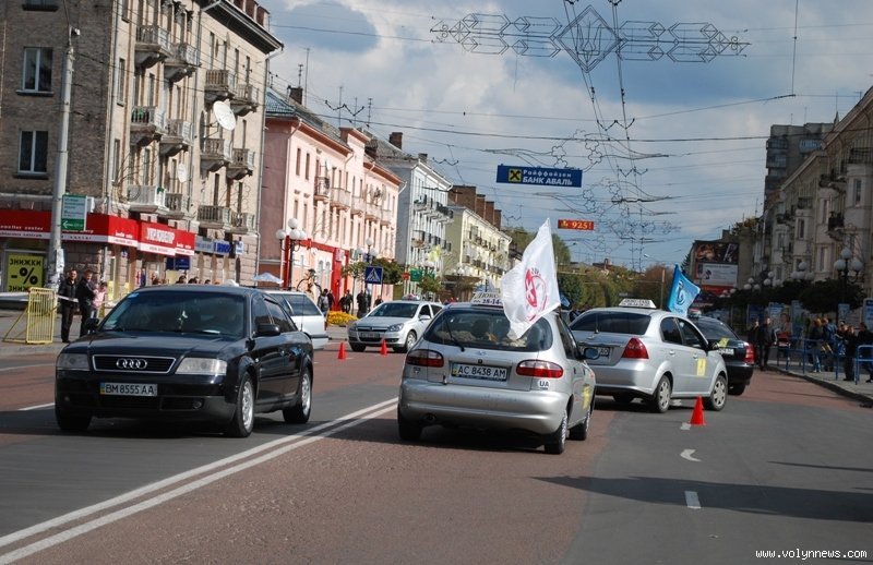 Більше 20 таксистів зібрались на проспекті Волі в Луцьку, аби взяти участь у конкурсі на визначення найкращої служби таксі, який вперше відбувся в обласному центрі.