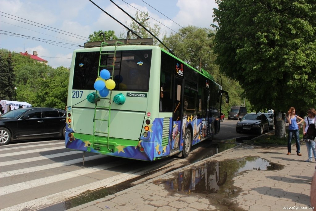 Екологічно чистий європейський тролейбус із луцькою та європейською символікою курсує Луцьком.
