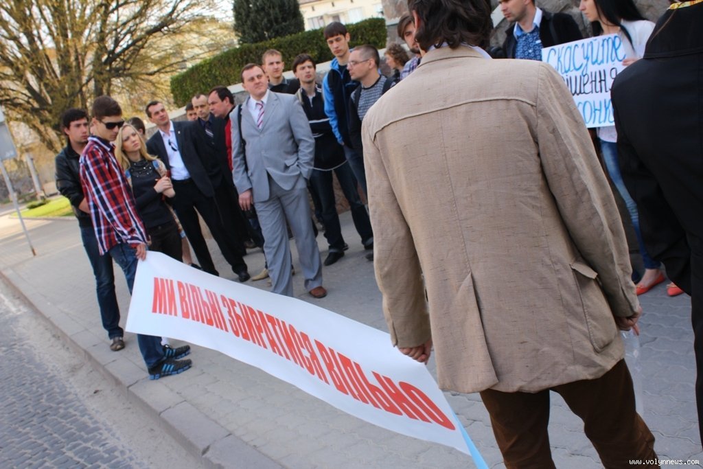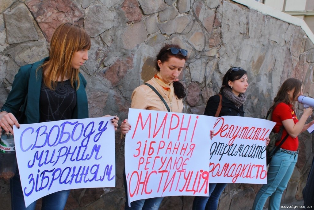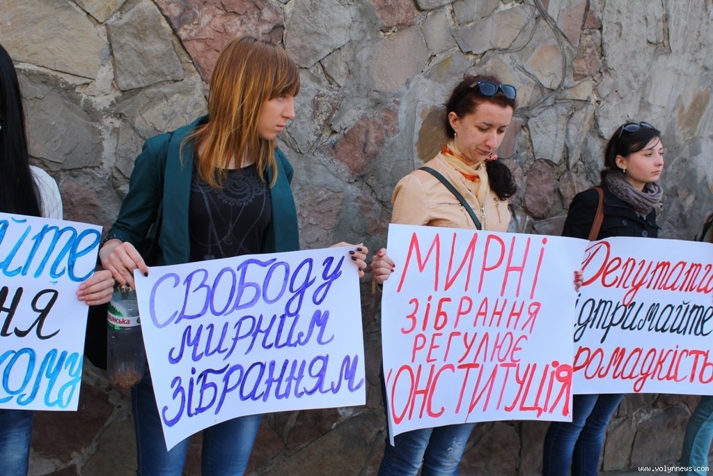 Як повідомили ініціатори акції Волинська обласна молодіжна громадська організація «Асоціація Молодих Реформаторів», прийняті зміни до рішення виконкому Луцької міської ради суперечать статті 39 Конституції України та обмежують права людей впливати на рішення влади та відстоювати власну думку.