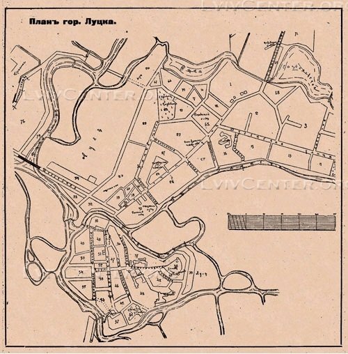 Першою з них став схематичний план Луцька 1907 року, оригінал якого опублікували у виданні «Весь Юго-Западный край».