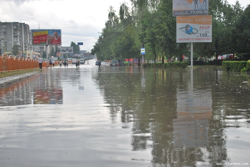Нагадаємо, злива, яка розпочалася по обіді 12 липня, залишила по собі величезні калюжі на деяких вулицях та проспектах Луцька. Через це рух автотранспорту сповільнився, а на окремих ділянках – припинився.