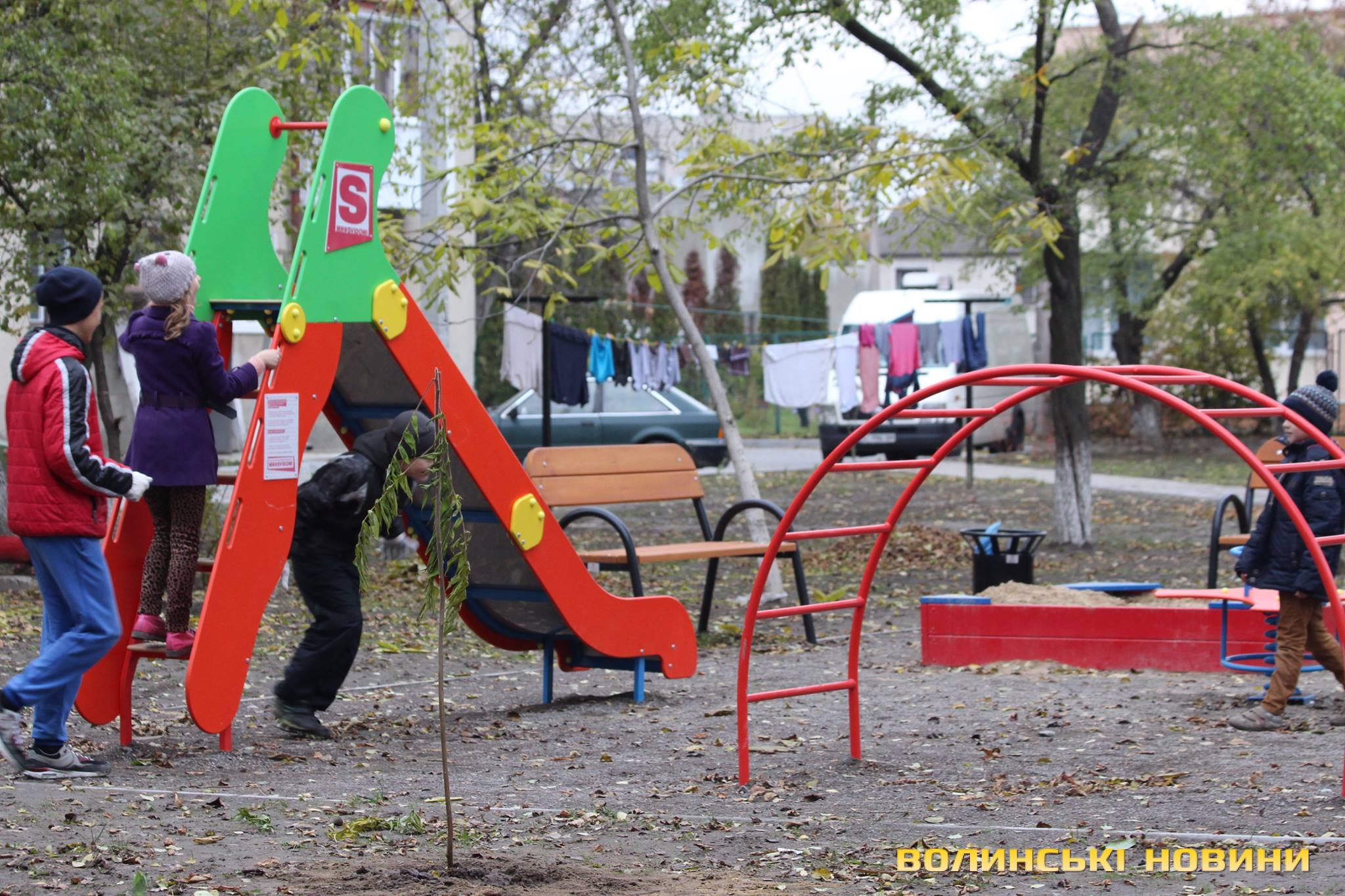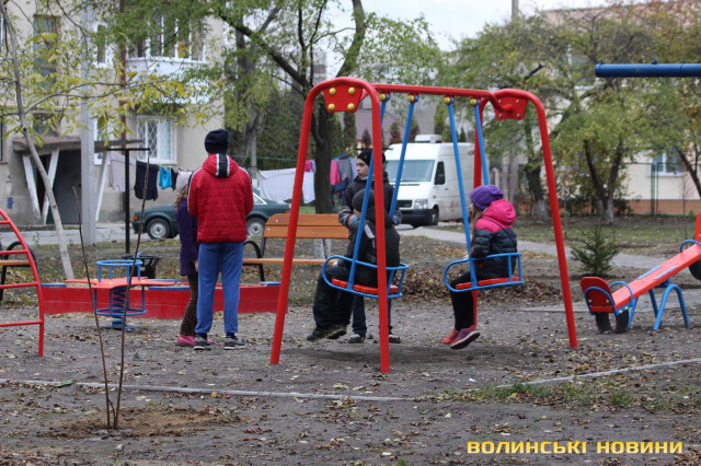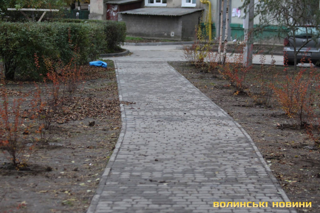 Більш як півстоліття у луцькому дворі не могли навести лад, коштів у мешканців не вистачало, та й руки до того не доходили. Сьогодні ж тут висадили дерева, встановили дитячий майданчик. Поміж новими саджанцями - гарні бруковані доріжки. Діти не натішаться, бо й самі взяли участь у покращеннях.