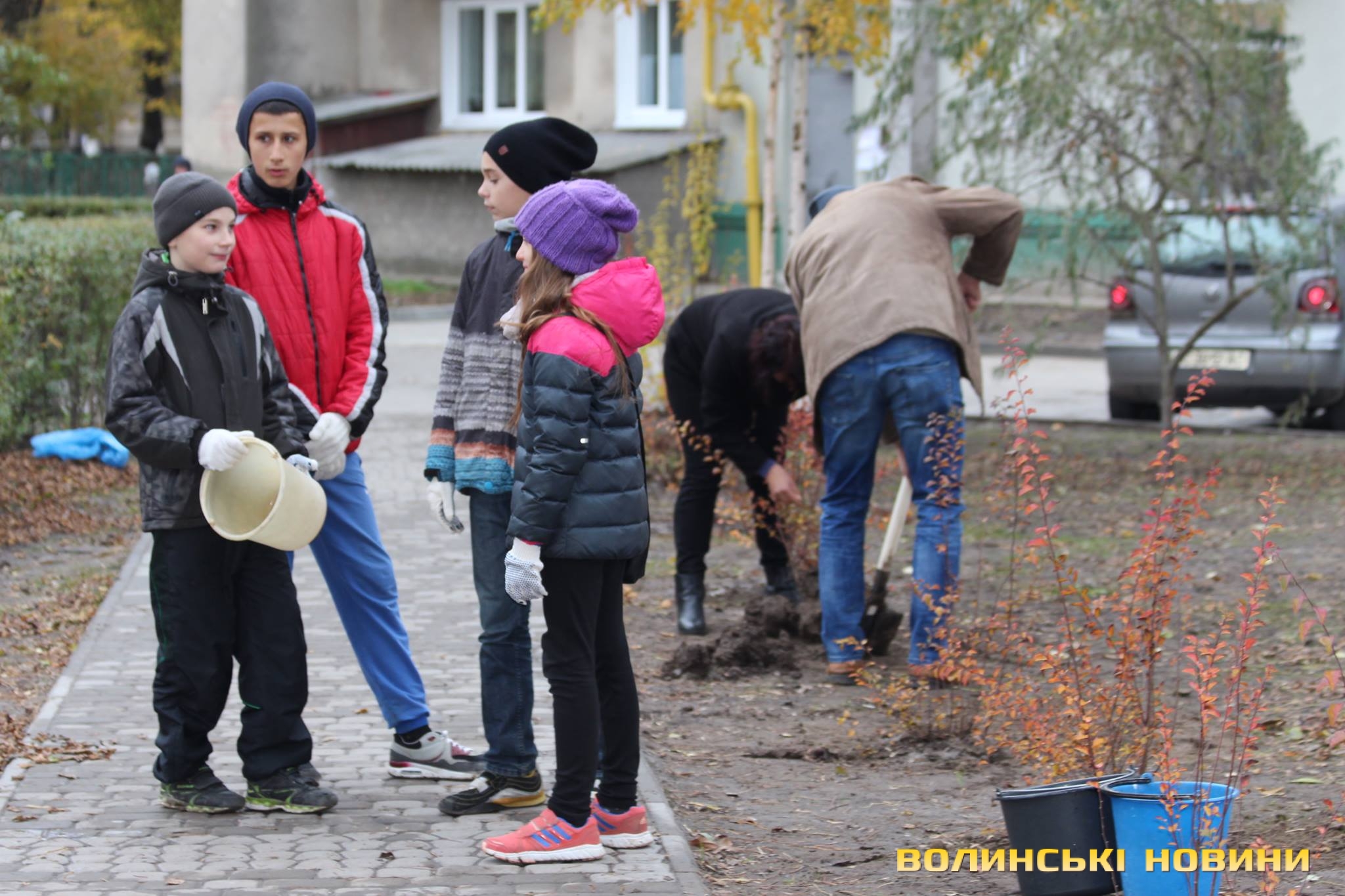 Колективний «суботник» з нагоди відкриття дитячого майданчика та озеленення прибудинкових територій по проспекту Волі, 45 та Київському майдані, 11 відбувся у четвер, 27 жовтня.