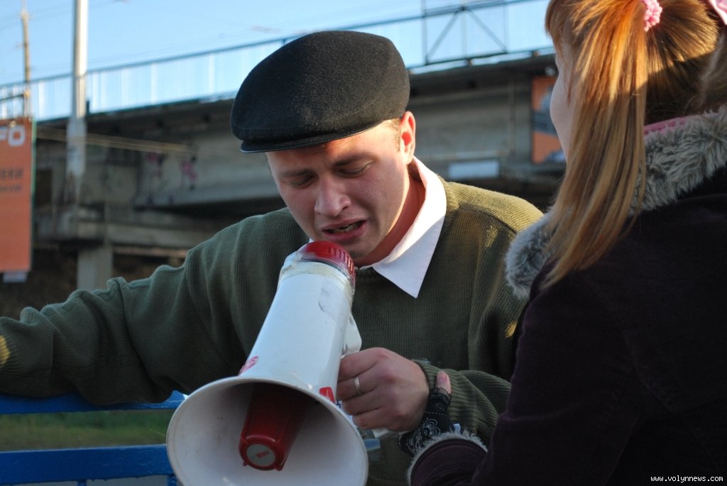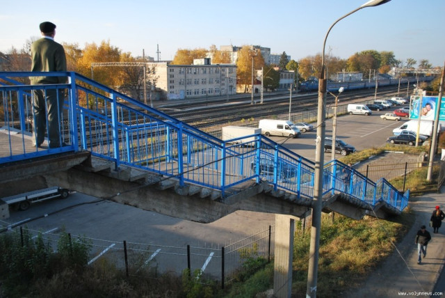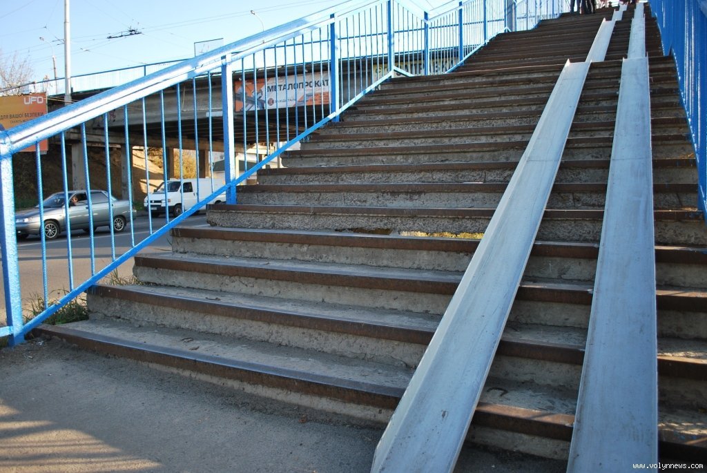 Ці сходи - єдиний спосіб швидко дістатися на міст з вулиці Карпенка-Карого. Але вони в аварійному стані й потребують негайного ремонту. У цьому переконані організатори акції, а це представники декількох молодіжних громадських організації. На власному прикладі вони намагалися довести, що східці небезпечні для лучан.