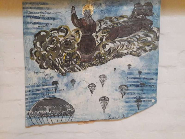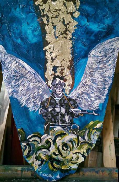 «Перед тим, як почалася війна, я служив в аеромобільних військах. І днем цих військ вважають день святого Іллі. Безпосередньо він являється покровителем повітряно-десантних військ. Я у своїй картині поєднав два часи. Намалював святого Іллю та бійців повітряно-десантних військ, які вискакують з його колісниці», – розповів Андрій.Як кажуть самі вартівці, для ветеранів бойових дій, це, насамперед, спілкування в тісному колі однодумців, переживання разом спільних проблем та тривог. Терапія іконою - це лікування зраненої душі молитвою і святим образом.