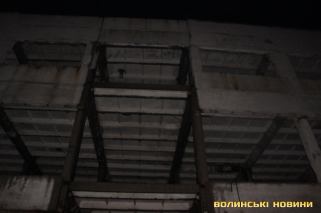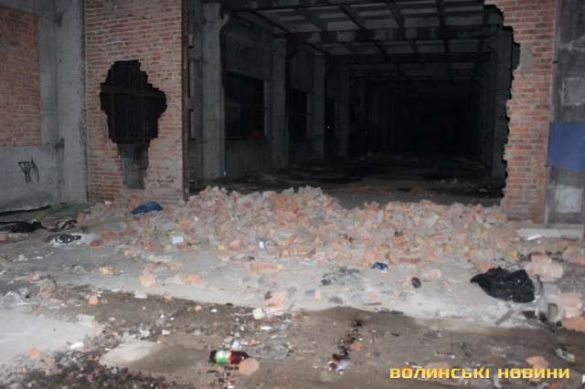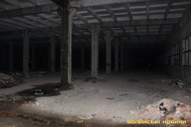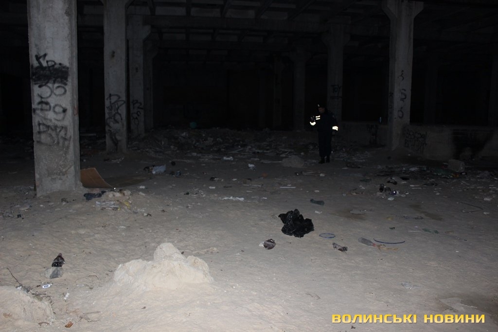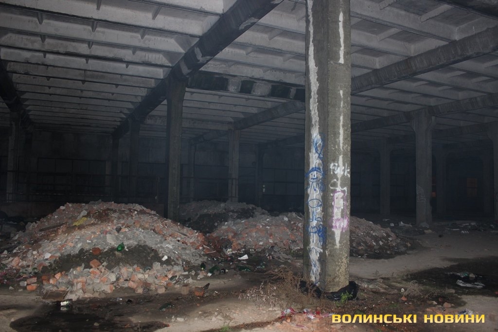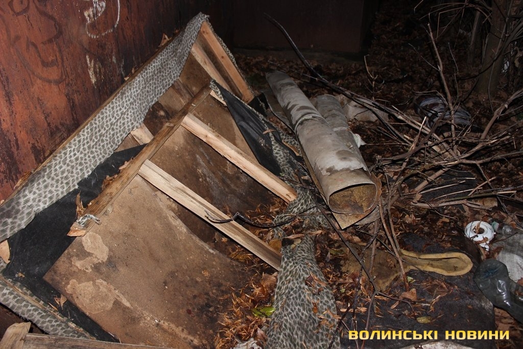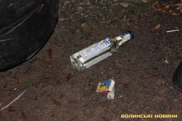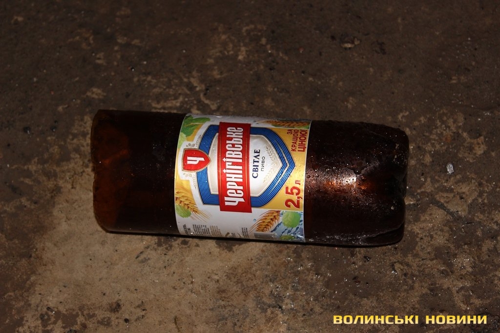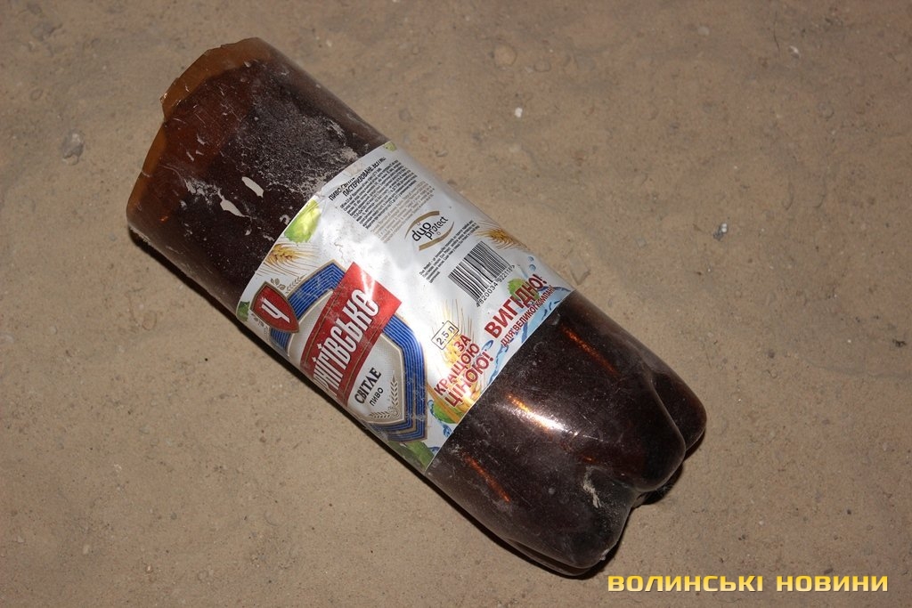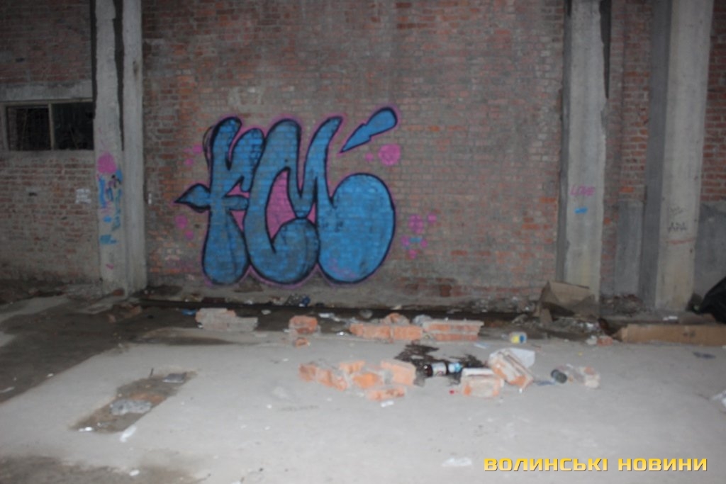 Перевіривши обстановку на луцькому Євромайдані, рухаємось далі, у напрямку наступної контрольної точки маршруту. Це – недобудована споруда, що на вулиці Шевченка. Тут, як і у підвалі безхатченків, теж ні душі.Лише сміття та залишки від декількох «водних».Як пояснив мені патрульний, так на жаргоні молодь називає саморобний пристрій для куріння коноплі.