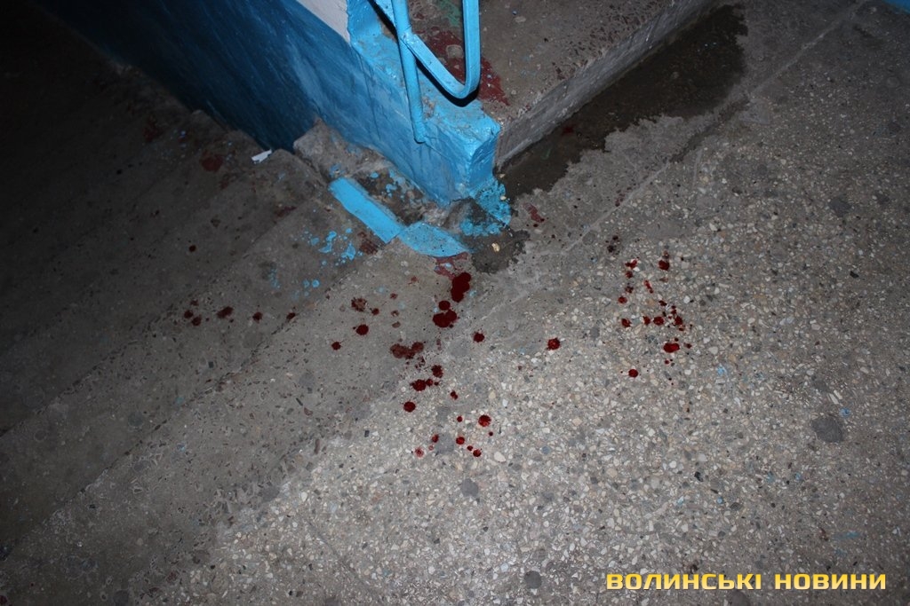 Від хвилювання забуваю про бронежилет і намагаюсь не відставати від міліціонерів. Перше, що застаю у фойє приміщення, – це криваві сліди та самого постраждалого.Чоловік повідомив, що ті, хто його побили, живуть тут же – поверхом вище. Мене просять зачекати внизу, адже це може бути небезпечно. Тим часом від постраждалого дізнаюсь, що він прийшов до свого сусіда, який не так давно вийшов з місць позбавлення волі, для того щоб забрати у нього свій мобільний телефон. Нібито, молодик вкрав його. Але натомість отримав декілька ударів від хлопця і компанії, яка відпочивала з ним.