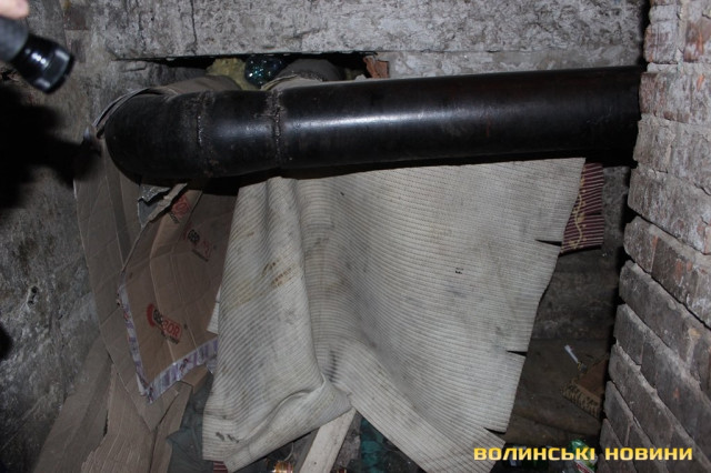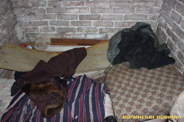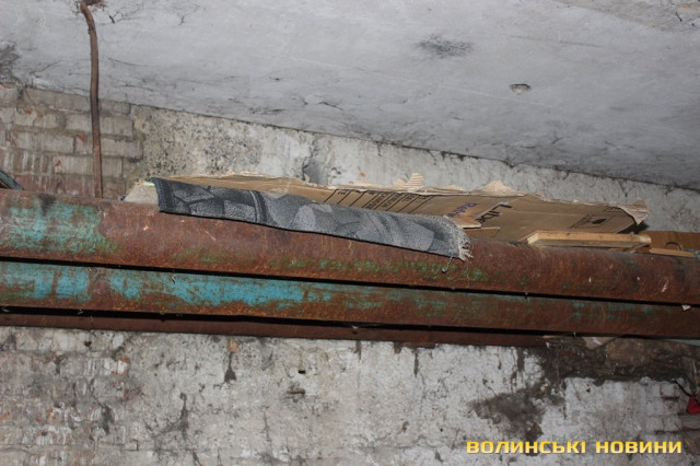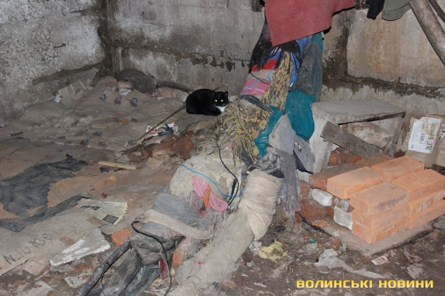 До гидотного смороду ніс звик вже за декілька хвилин. А от картина, яку там побачив, забудеться ще нескоро. Прямо на трубах – лежанки, поруч з ними щось на кшталт столиків. Так як туалету тут немає (навіть умовного), місцевий контингент справляє нужду там, де бачить. Про це мене намагався завчасно попередити молодший сержант міліції Петро Стецюк.Проходимо велику «кімнату», звідки мене проводжають у другу частину лігва: «А це в них VIP-місця, якщо можна так сказати. Двомісні апартаменти», - жартують патрульні.В підвалі - ні душі. Лише пляшки з-під спиртного, в перемішку зі сміттям, їжею та наслідками відсутності туалету та кіт, який байдуже спостерігав за нами.Вусатий ніяк не реагував ані на звуки, ані на людей, ані на фотоспалахи.