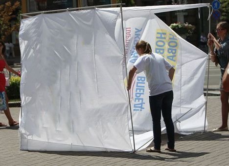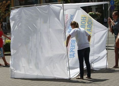 Інформаційні та агітаційні намети на Театральному майдані у Луцьку заборонять розміщувати під час святкування Дня Незалежності.