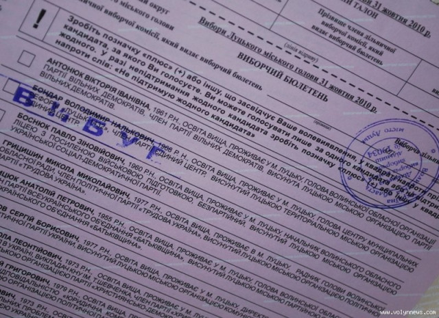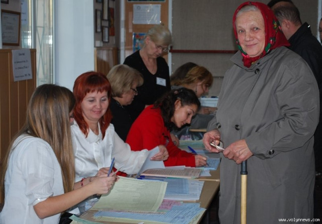 При виході з дільниці на виборців чатує представниця екзот-полу київської компанії «ГТФ Укрейн», яку замовила одна з політичних сил. Виборці за бажанням зізнаються інтерв’юеру проти кого поставили галочку в бюлетені з кандидатами у мери Луцька.
