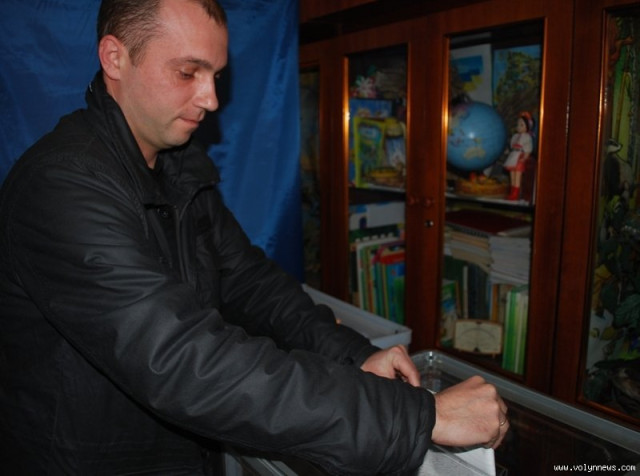 На виході дільниці чергує правоохоронець. Раптом до дільниці заходить один з кандидатів у мери Микола Дідух. Як виявляється він об’їжджає усі ДВК, аби побачити картину голосування на власні очі.