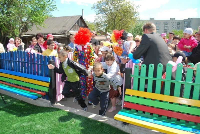 На відкриття майданчика завітали представники влади, а також кілька десятків дітей та їх батьків. Клоуни веселили малечу і скручували з балонів фігурки тварин.