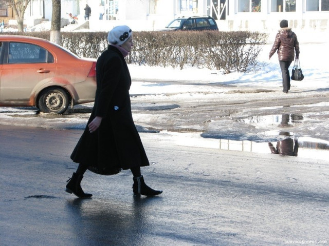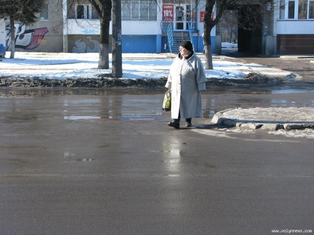 Тільки переводимо погляд в інший бік як бачимо неподалік жінку з коляскою. Вона спокійно, об’їжджаючи усі калюжі на дорозі, перевозить своє маля на інший бік дороги. Схоже матір не дуже хвилюють можливі наслідки такої недбалості, не кажучи вже про власний приклад для дитини.