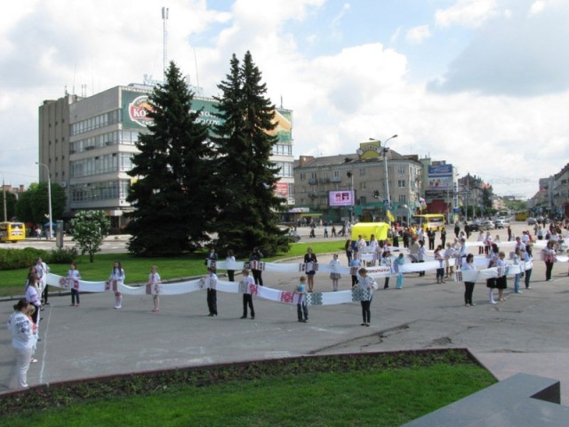 Традиційно на Театральному майдані складали слова. Цього разу учасники, тримаючи в руках рушники, складали слово «Луцьк».