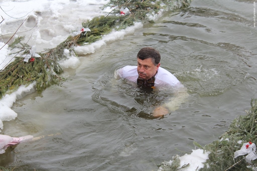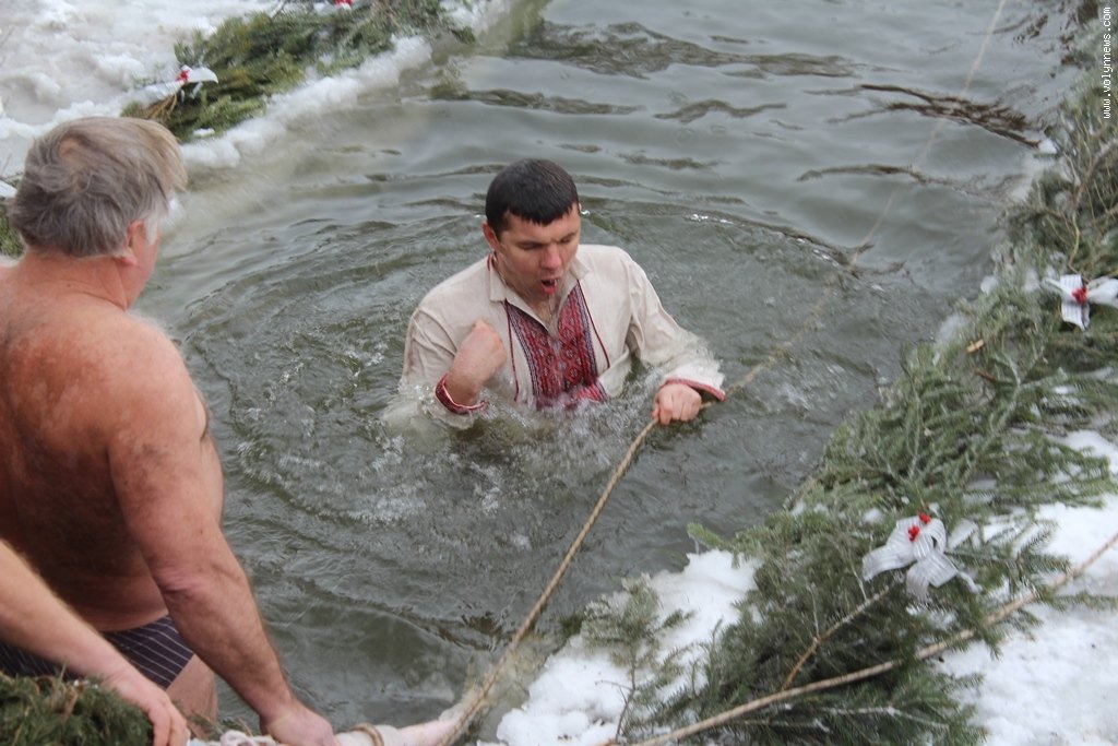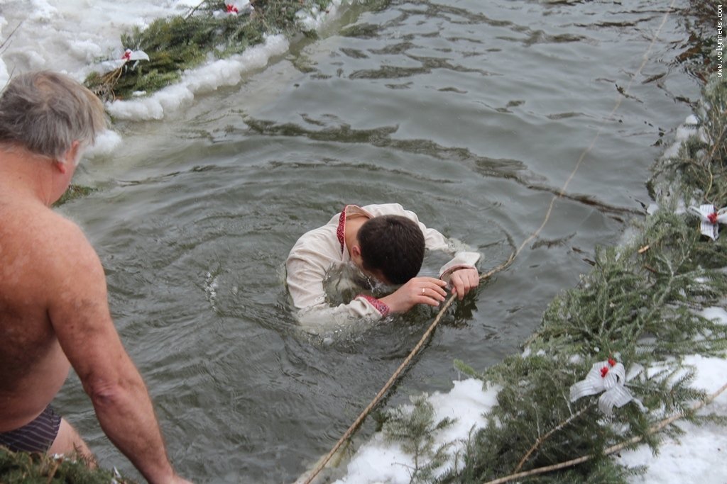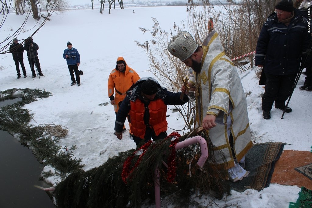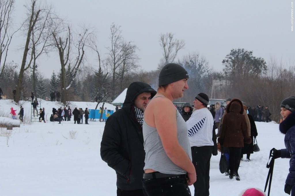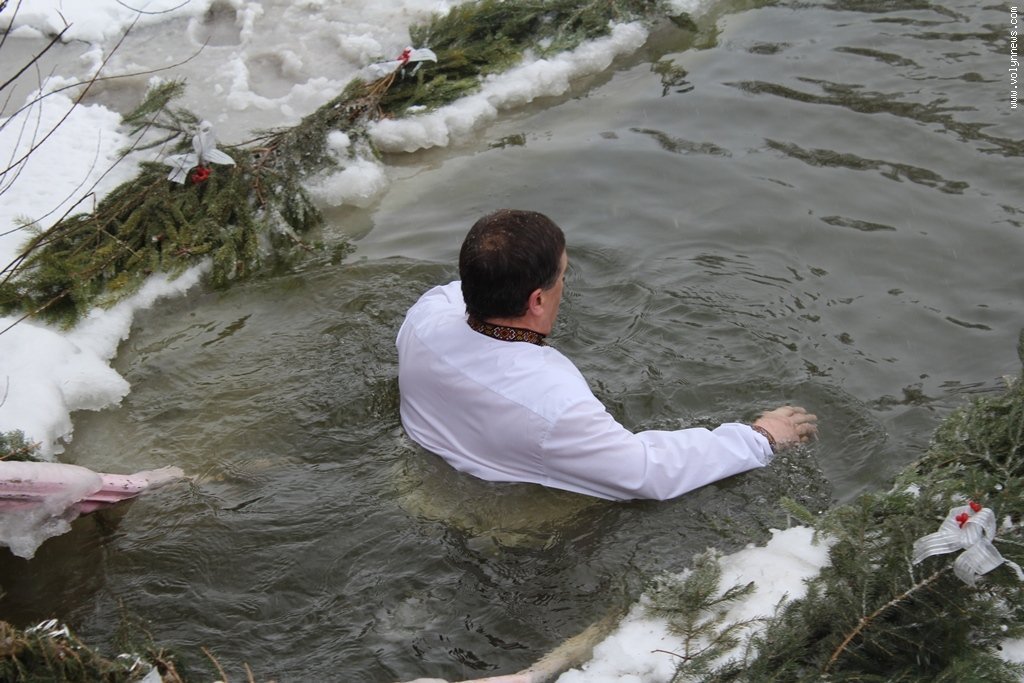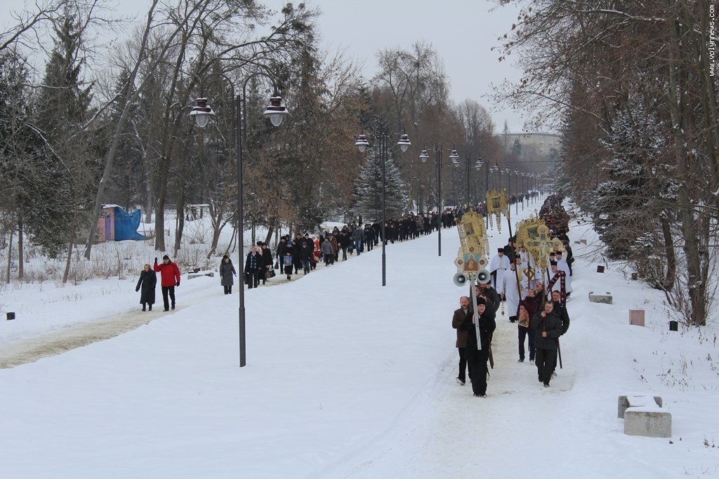 Після богослужіння церковники рушили хресною ходою до Стиру на пляж міського центрального парку. Саме там відбулося велике освячення води, а всі охочі могли пірнути в ополонку, яку вирубали у водоймі у вигляді хреста.