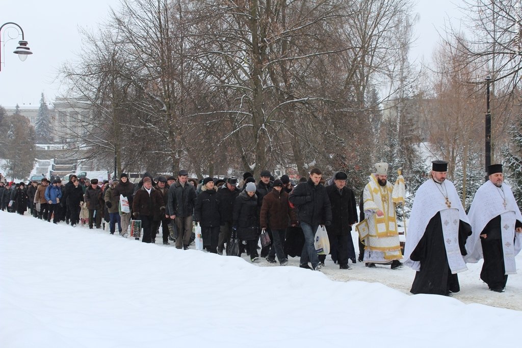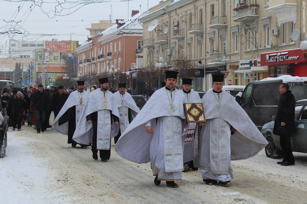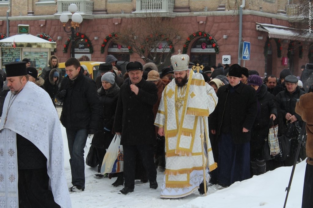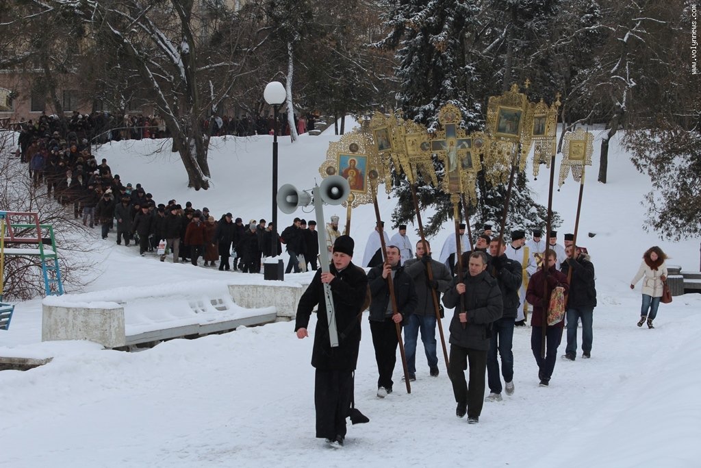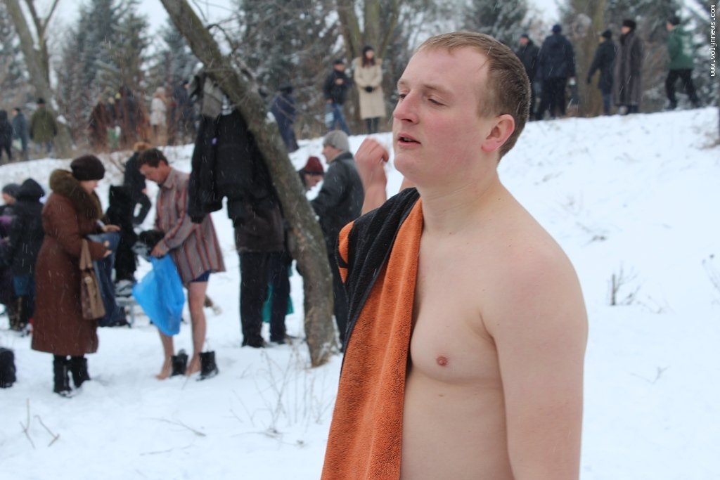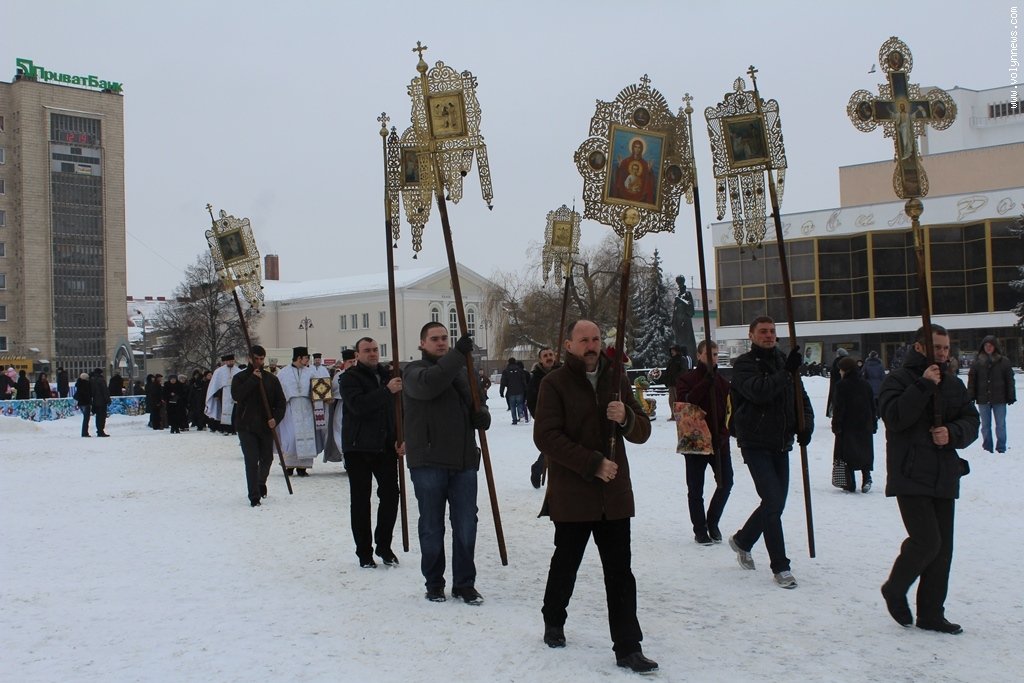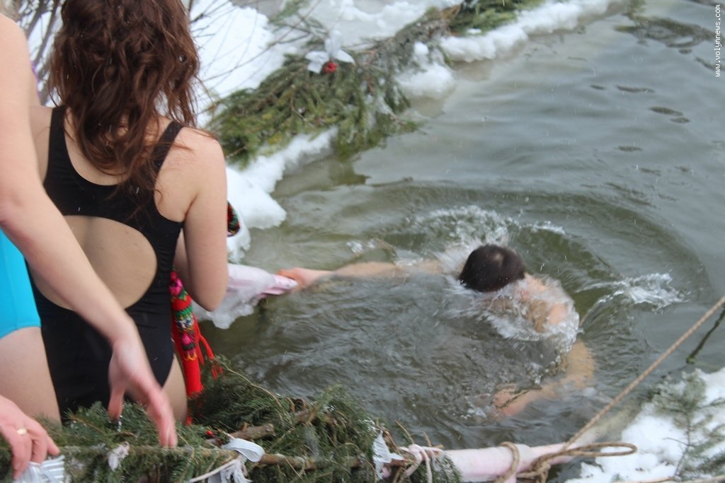 Після богослужіння церковники рушили хресною ходою до Стиру на пляж міського центрального парку. Саме там відбулося велике освячення води, а всі охочі могли пірнути в ополонку, яку вирубали у водоймі у вигляді хреста.