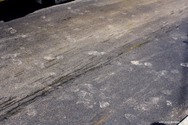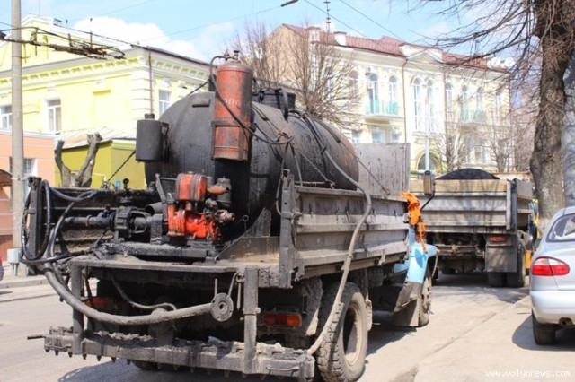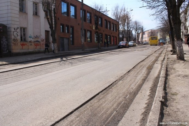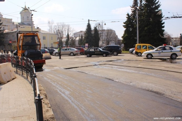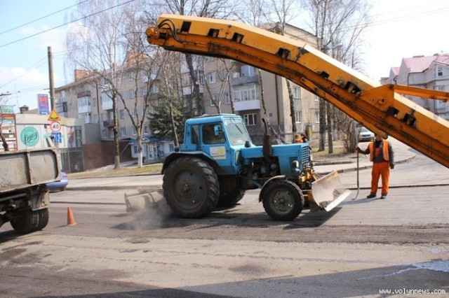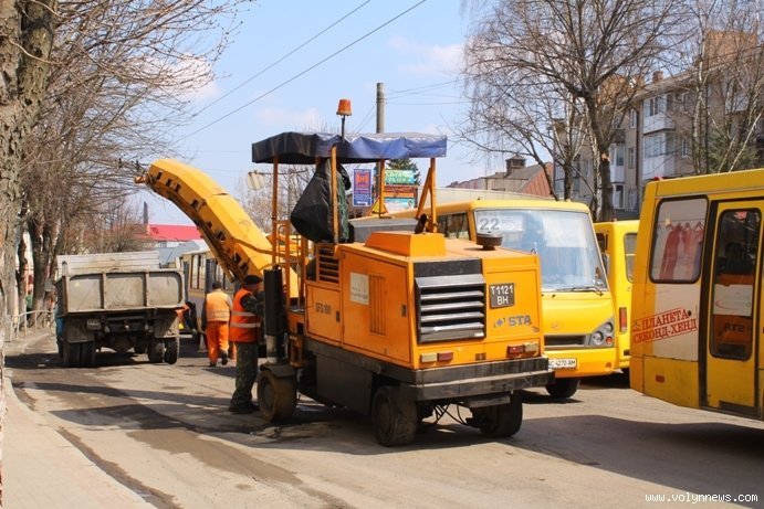 Старий асфальт частинами знімають та очищають основу, де впродовж дня закладуть свіжий асфальт.