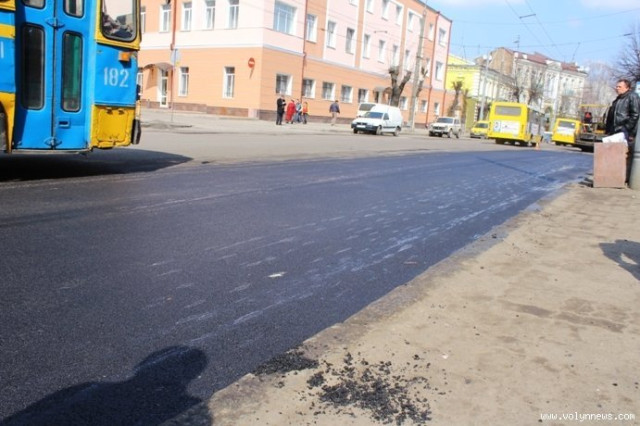 Перший шмат дороги на місці зупинки марштурних таксі вже відремонтували. Пасажири з остахом ступають на нове покриття, однак за кілька хвилин по ньому вже почав їздити транспорт.