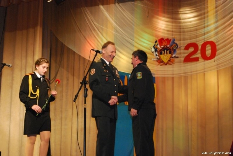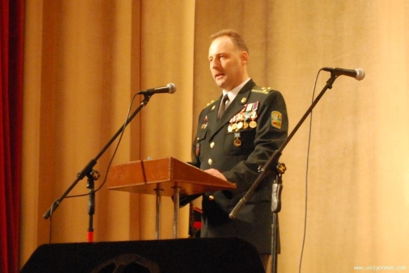 Вітання від голови Волинської обласної ради Володимира Войтовича озвучив його помічник Володимир Магера. «20 років для світової історії – це, мабуть, ніщо. Але для нашої молодої держави, для Збройних Сил України 20 років – це історія», - розпочав свій виступ чиновник.