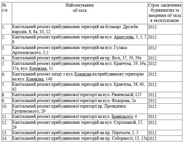 Виконавчий комітет Луцької міської ради затвердив перелік прибудинкових територій, які капітально реконструюватимуть протягом 2012 року за кошти місцевого бюджету.