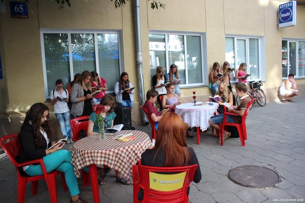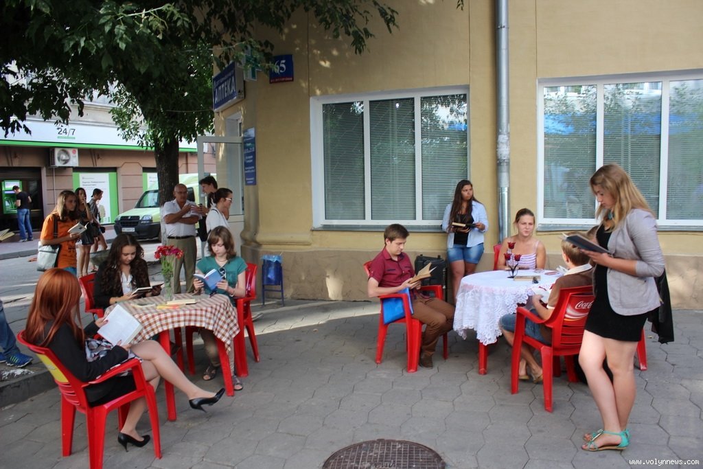Організувала флешмоб команда «Art Space» від Спілки громадських організацій «Молодіжна платформа». Протягом п’ятнадцяти хвилин приблизно два десятки учасників флешмобу, до якого міг долучитися кожен перехожий, читали книги. На розі вулиць Лесі Українки та Крилова розташували столики, присівши за які можна було обрати книгу на свій смак. Окрім цього, кожен з учасників акції приносив свої книги, тому читали найрізноманітнішу літературу - від казок до французьких романів, детективів та сучасної української літератури.