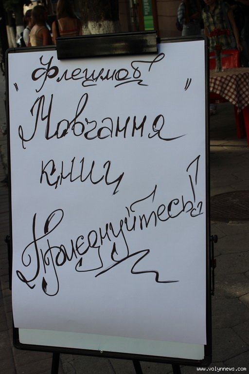 Долучити лучан до читання у епоху інтернету намагалися учасники флешмобу «Мовчання книг», що відбувся у центрі міста 15 серпня.