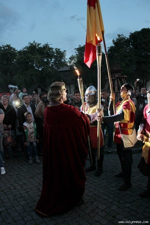 Заступник голови Волинської ОДА Сергій Ющак зазначив, що замкові стіни пам’ятають чи не найперший з’їзд монархів Європи, тому європейськість лучанам передається із генами. Мовляв, князь Любарт передав волинським можновладцям папір із заповітом дбати про добробут лучан. Як пізніше зізнався Володимир Войтович, спілкування з князем багато до чого зобов’язує. Господар замку разом із очільниками міста та області передав палаючі смолоскипи лицарям, які, підпаливши вогонь у символічній короні, дали початок дійству.