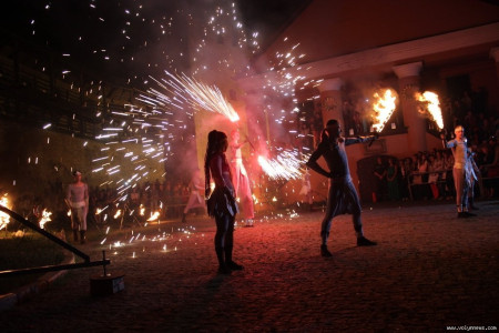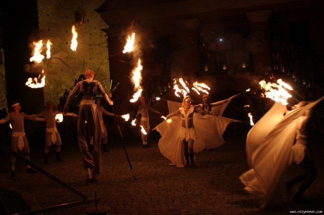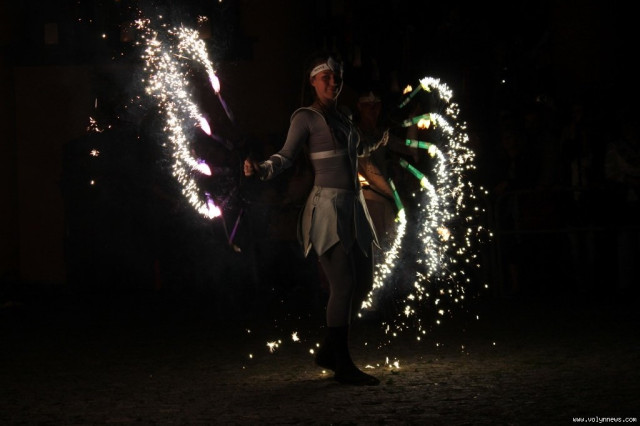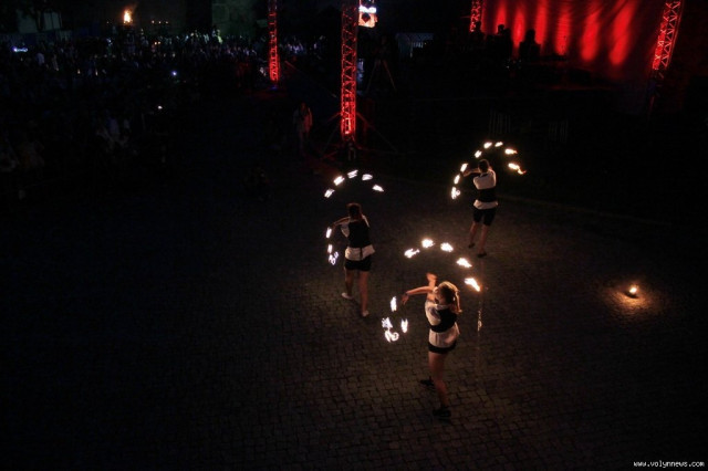 Небезпечне мистецтво володіння вогнем упродовж ночі демонстрували артисти київського театру вогню «К.О.Т.» та львівського «Паладін». Глядачі проводжали артистів вигуками «молодці».