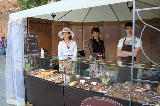 Упродовж ночі працювали заклади, що пропонували скуштувати середньовічні страви, зокрема свиню, запечену на вогні. Вільного місця у харчевнях годі було знайти, незважаючи на доволі високі ціни. Так, тим, хто бажав скуштувати шашлик, довелося викласти 25 гривень за 100 грамів, склянка гарячого вина з медом коштувала 10 гривень, пляшка питного меду 50 гривень, а свіжозапечені ковбаски 20 гривень за 100 грамів. Солодкі сувеніри - виготовлені із шоколаду картинки із зображенням замку пропонували придбати за 16 гривень.