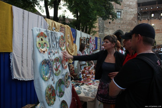 На території замку демонстрували свої вироби народні майстри. Тут можна було придбати сувеніри на згадку про «Ніч у Луцькому замку», вироби гончарства, ковальства, соломкарства, картини, ляльки, обереги, мило ручної роботи, віночки та тварин, зроблених із трави.