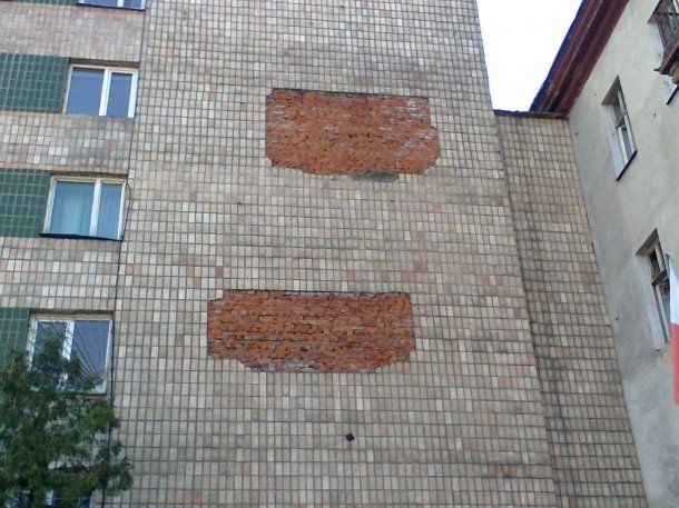 Будинки № 1 та 3 , що на вулиці Ковельській - тріщать по швах та обростають дірками. Адже із бокових частин стін дірки від облицювальної плитки, яка колись там була, - повідомляє «Комунальний патруль».
