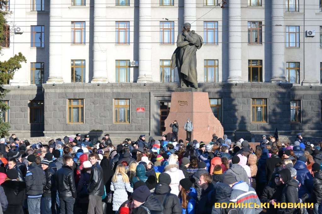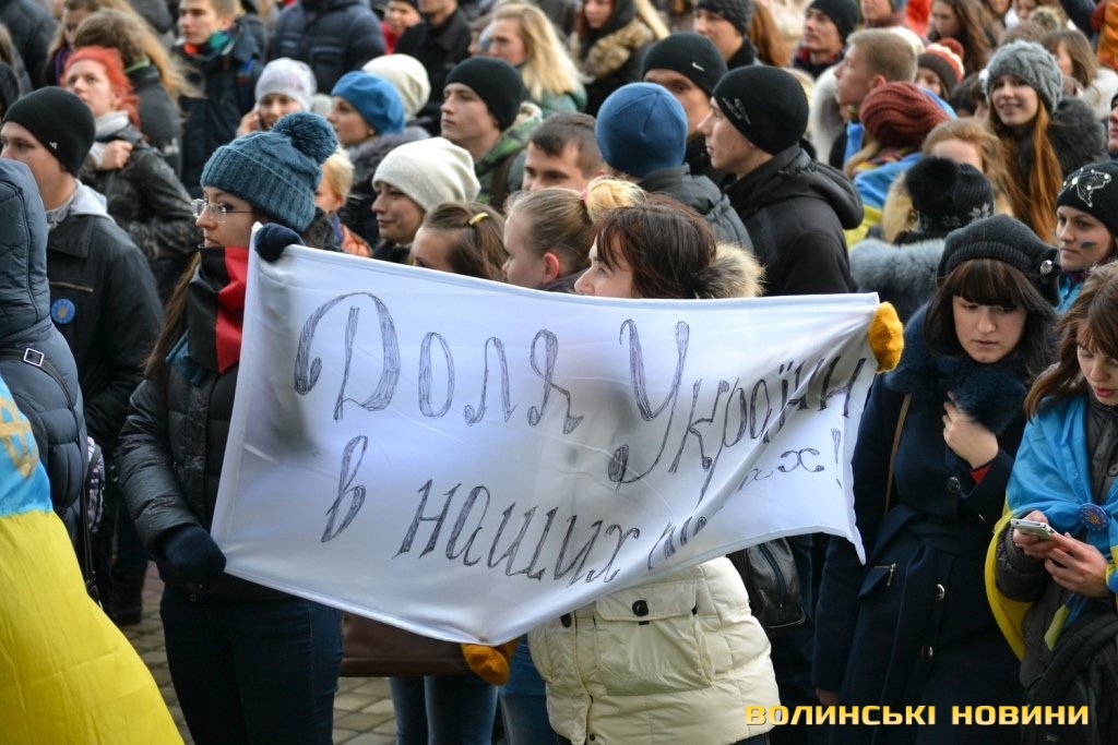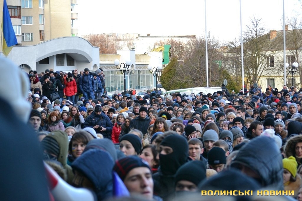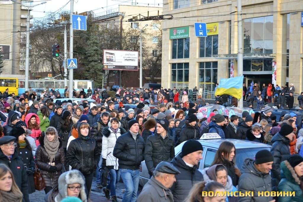 Декілька тисяч лучан 2 грудня приєдналися до всеукраїнського страйку на підтримку Євромайдану. З Театральної площі у Луцьку вони вирушили ходою до обласної ради з вимогою відставки голови облдержадміністрації та голови Волиньради.