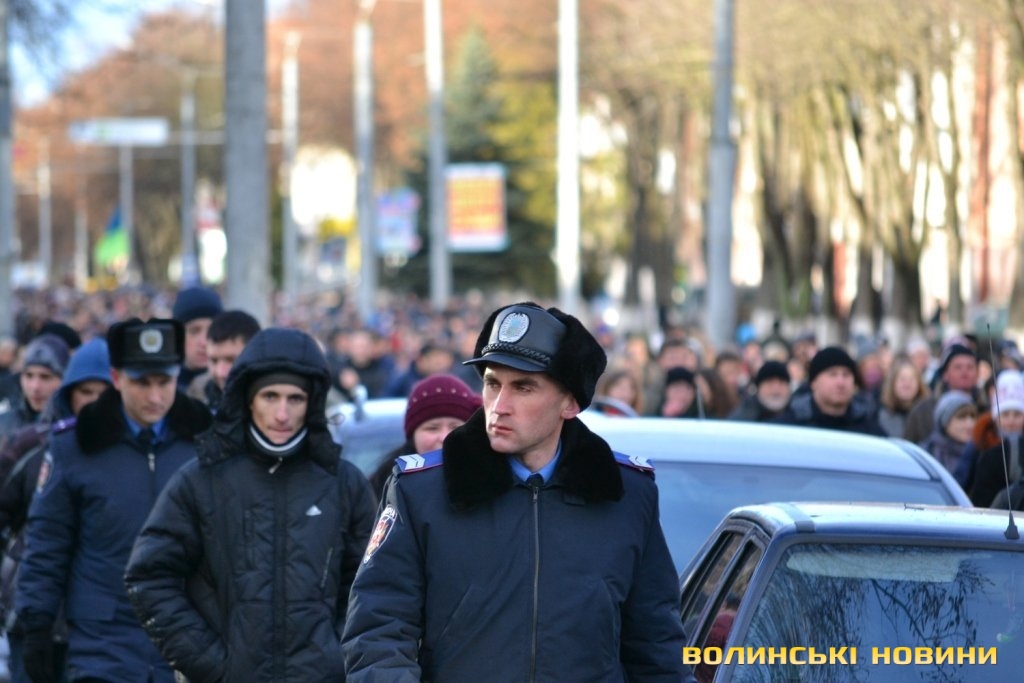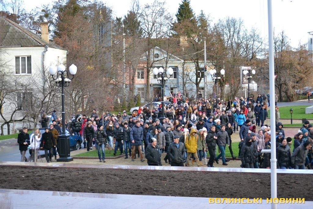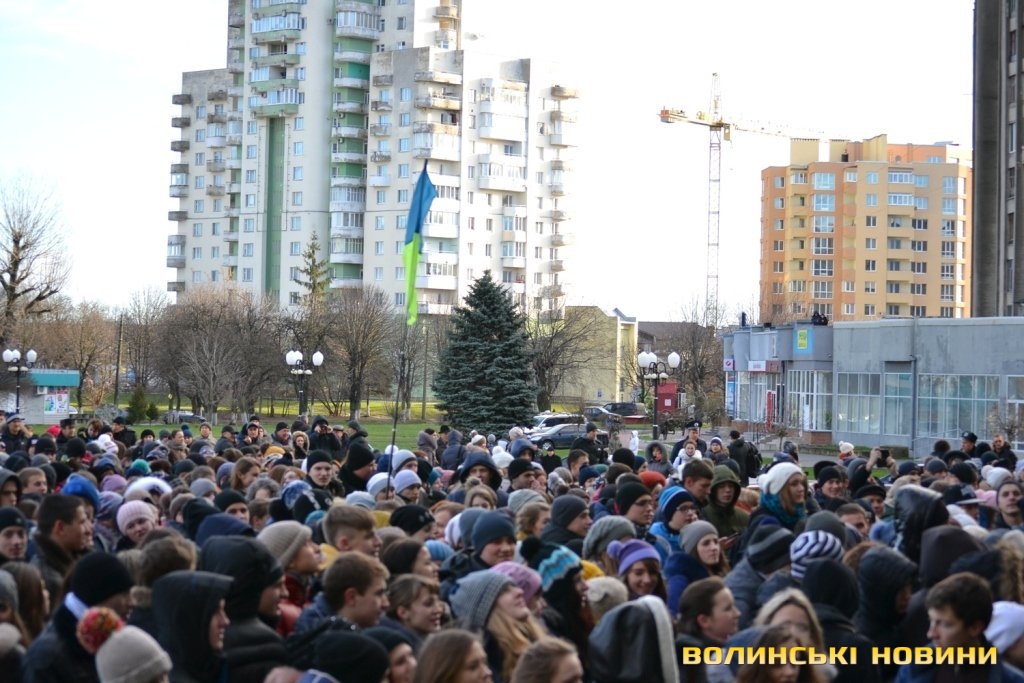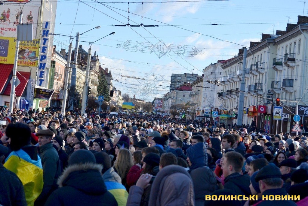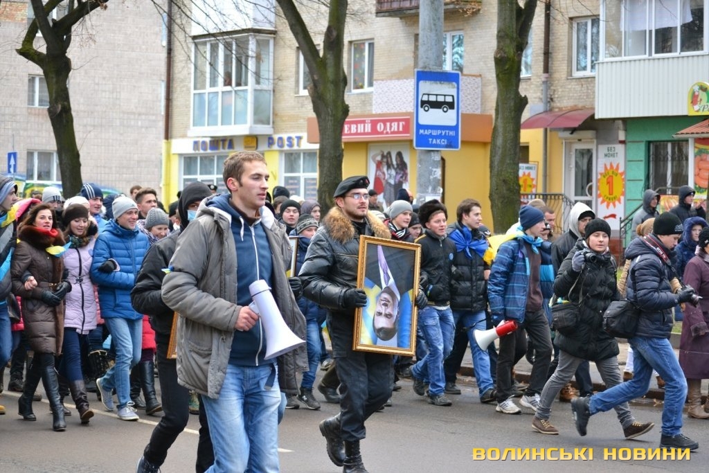 Декілька тисяч лучан 2 грудня приєдналися до всеукраїнського страйку на підтримку Євромайдану. З Театральної площі у Луцьку вони вирушили ходою до обласної ради з вимогою відставки голови облдержадміністрації та голови Волиньради.