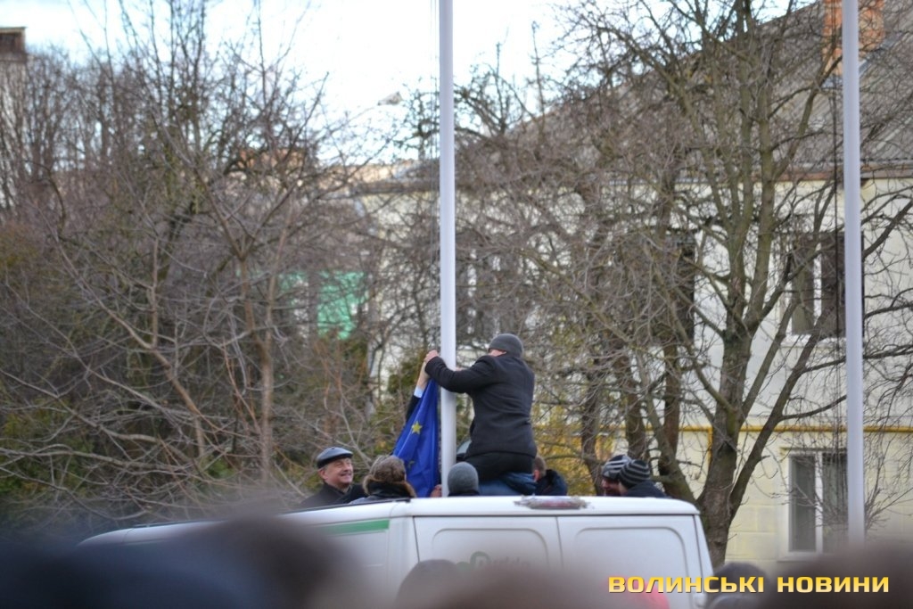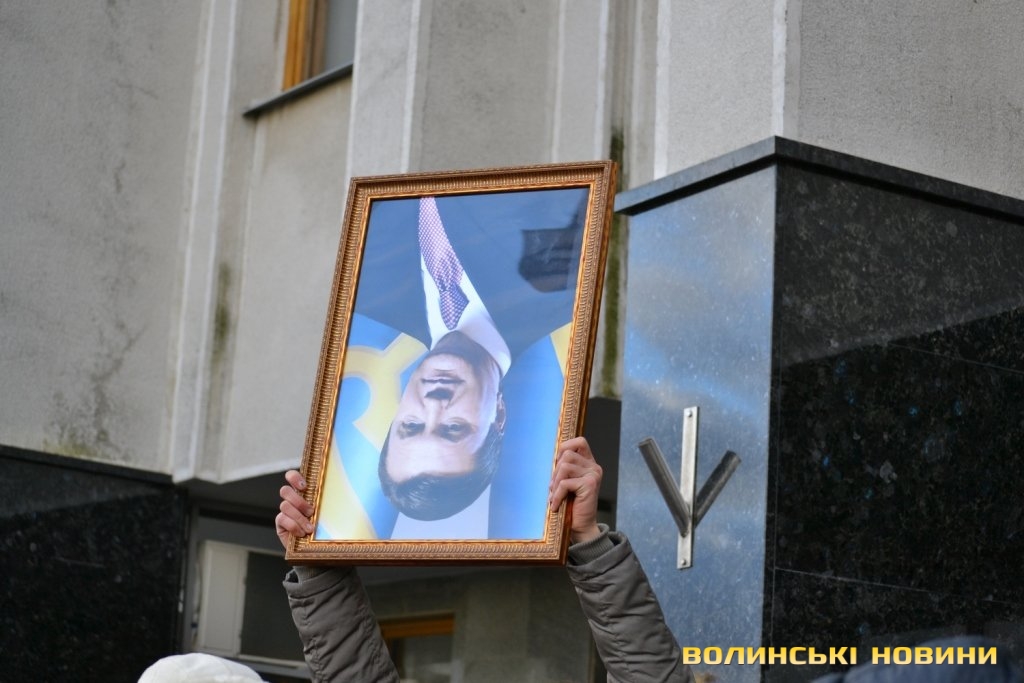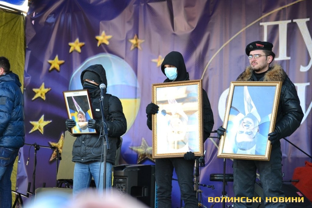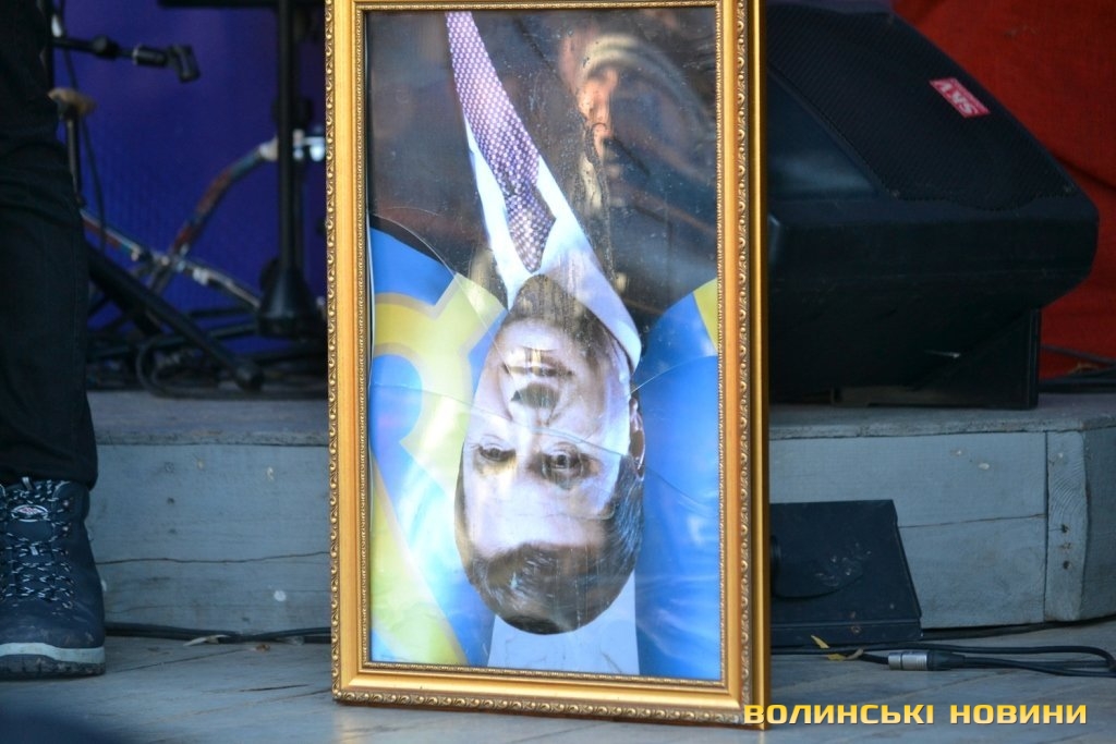 Під час мітингу група депутатів міської, обласної та Верховної Рад вирушили у приміщення облради, щоб зняти портрети Януковича. Після цього, портрети глави держави демонстративно знищили на очах у багатотисячної кількості страйкарів на Театральній площі у Луцьку.