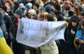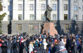Мітингувальники закликали усіх перехожих, студентів, водіїв, аби вони приєдналися до страйку.