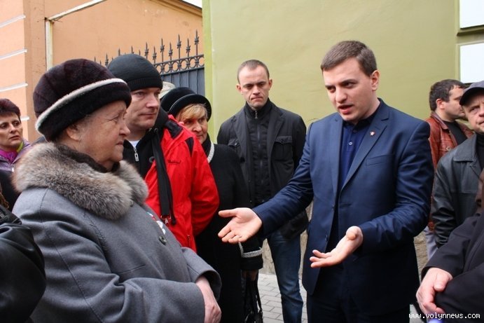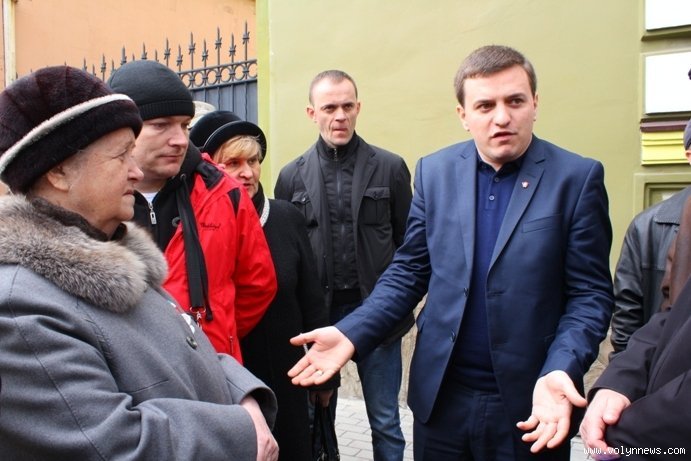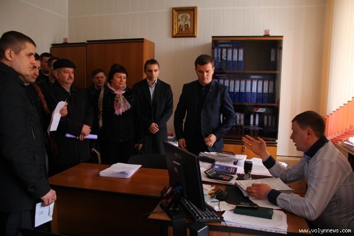 Там мітингувальників на чолі з нардепом неохоче прийняв начальник відділу Державної виконавчої служби міста Луцька Сергій Харченко. Його спілкування на початку видалось дещо хамовитим. Він намагався заборонили знімати розмову журналістам та просив вийти тих, хто не має відношення до справи.