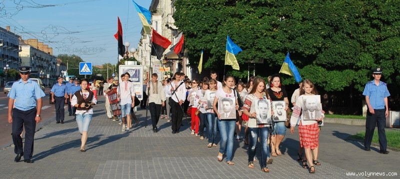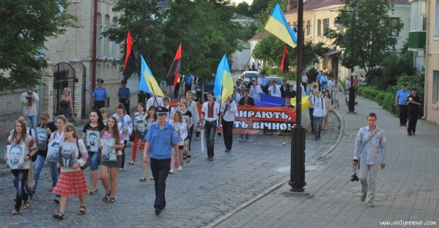 Приблизно півсотні молодих людей пройшли маршем до будівлі колишньої луцької тюрми, де вшанували пам’ять майже 4 тисяч в’язнів, розстріляних без суду і слідства 22-23 червня 1941 року. За кілька годин до цього з тією ж метою поблизу екс-буцегарні зібралися керівники області та міста, місцеві депутати, громадські активісти, православні священики й ченці, родичі в’язнів тюрми.