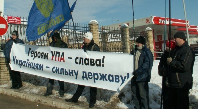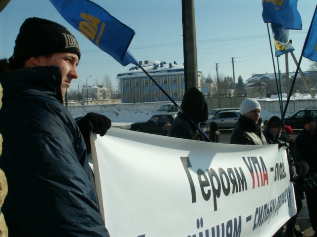 Біля Генерального Консульства Республіки Польща у Луцьку зібрався невеличкий пікет. Присутні близько години тримали у руках плакати з написами «Бандера – наш герой» та мерзли.