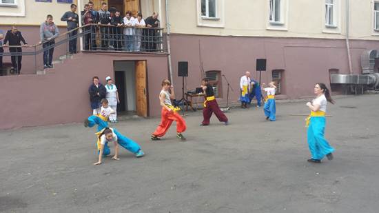 Під музичні енергетичні звуки українських пісень, вихованці Школи продемонстрували присутнім, які, хоч на костилях, але вийшли з палат, майстерність козацького бойового мистецтва – Бойовий Гопак - основу бойових мистецтв світу. Від семирічного джури до студента та учнів середніх шкіл міста Луцька видовищно було показано Однотан (бій з тінню), тан-Двобій тощо. Майстерно володіючи холодною зброєю – козацькою шаблею, доповнюючи елементами бойової акробатики, багаторазовий призер з козацьких бойових мистецтв та східних єдиноборств, інструктор Бойового Гопака Роман Ковальчук заслужено отримував щирі оплески від бійців АТО.