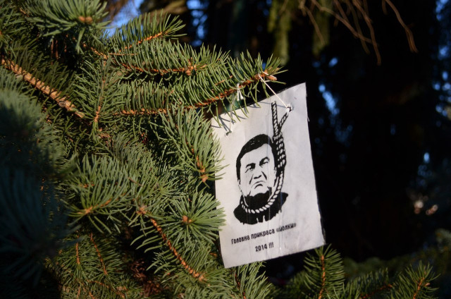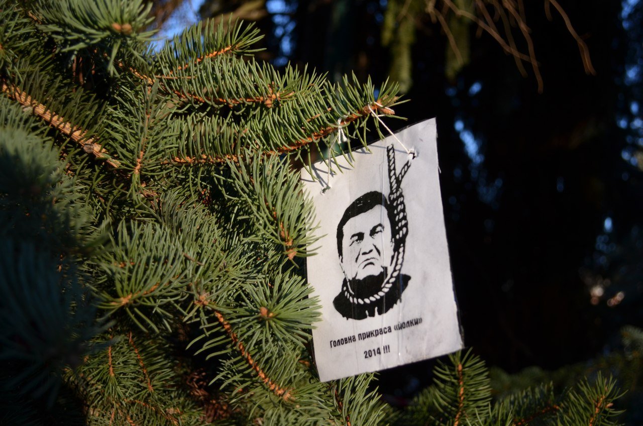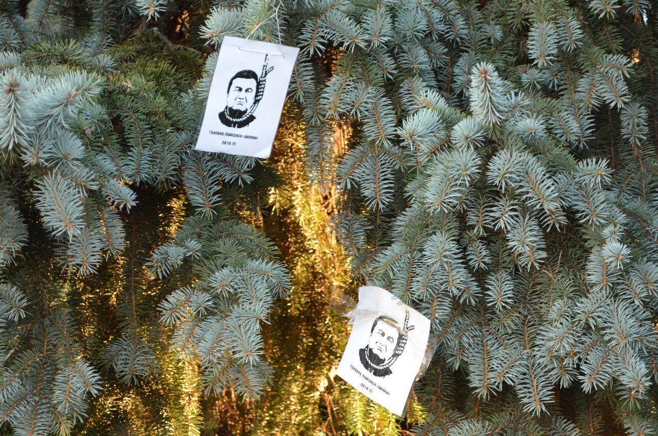 «Віктор Янукович має нещасливі асоціації з ялинкою, точніше «йолкою», тому ми вирішили повісити його портрет саме на цьому дереві», - зазначають активісти євромайдану.