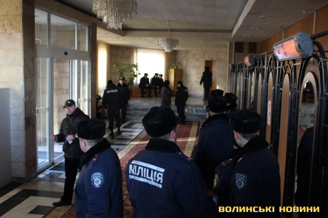 Однак правоохоронці не пускають їх у приміщення облдержадміністрації. Декілька хвилин тому надійшла пропозиція, що кожен депутат проведе з собою по троє людей. Проте коли ті почали підходити, міліція стала шеренгою, аби не дозволити цього.
